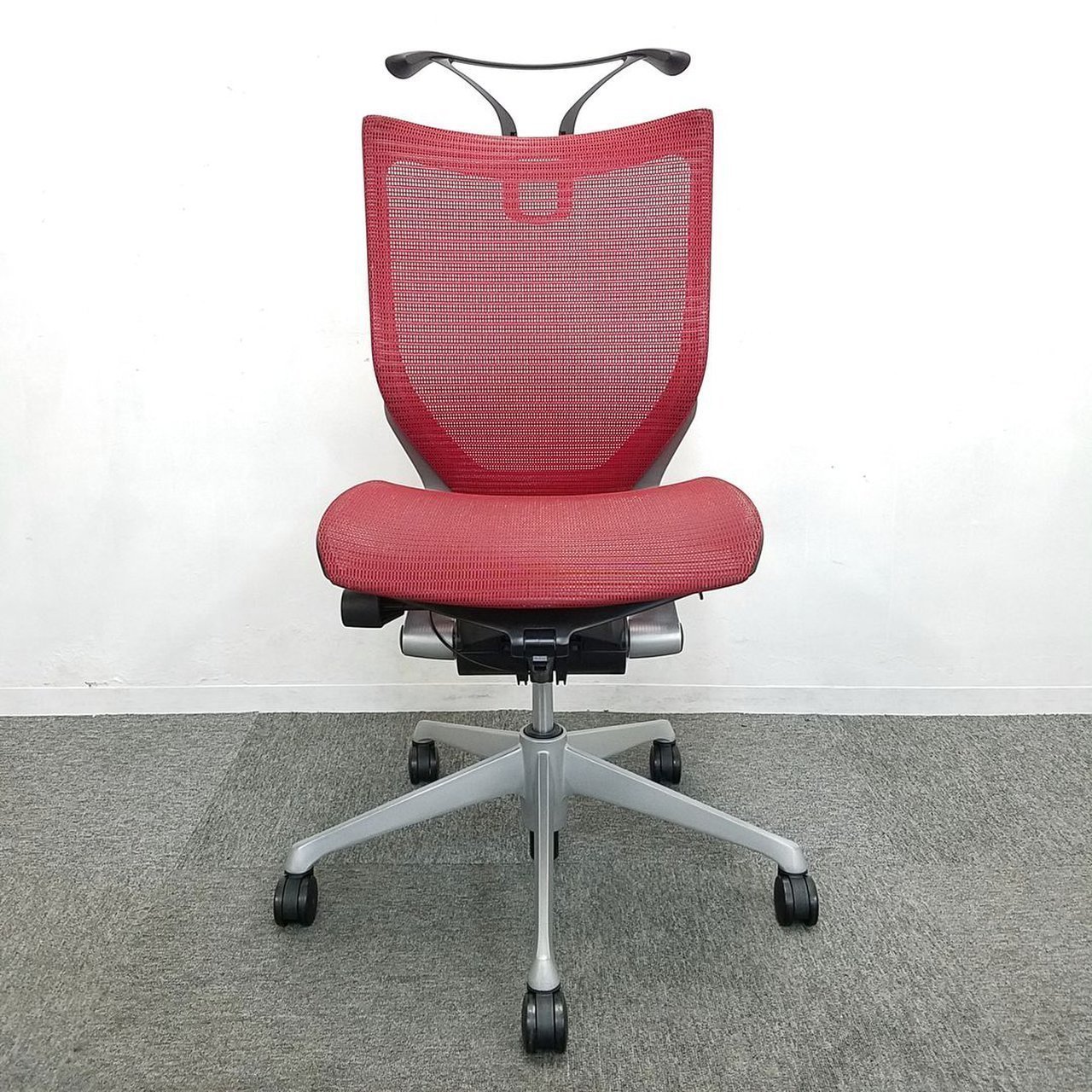 オカムラ製 バロンチェア メッシュタイプ レッド色 高級チェア コートハンガー付き コスト重視 コスパ抜群 ロット【在庫入替品】※上下昇降、リクライニング時に異音などありサーキュラーバリューCO2削減量の算出について