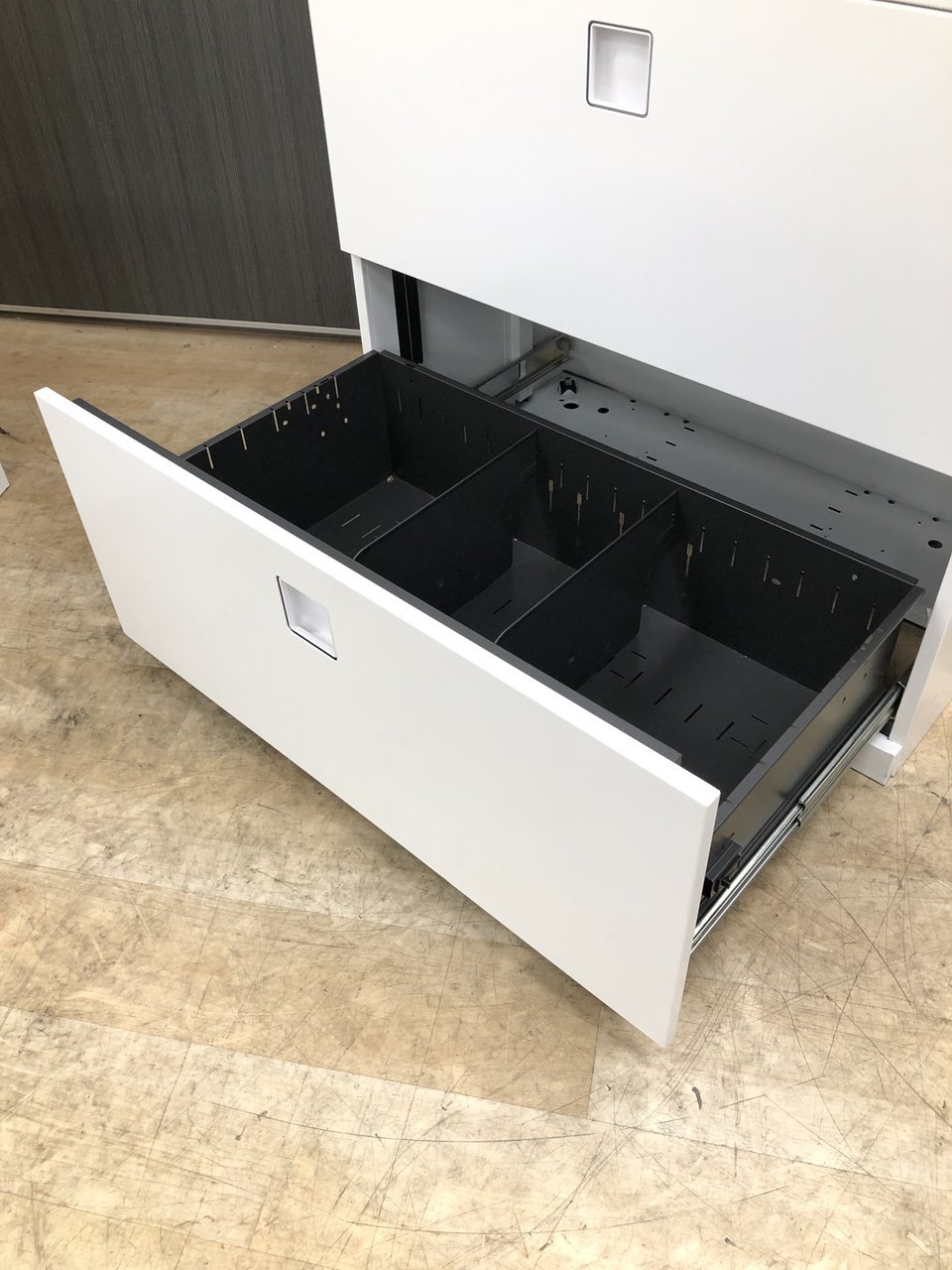 【オフィスの必需品!大容量の三段キャビネット!】■オカムラ(okamura)製 レクトラインシリーズ 3段ラテラル ローキャビネット ■ベース付 ■シリンダー錠 ■ホワイト 【弊社使用欄:A01037187】