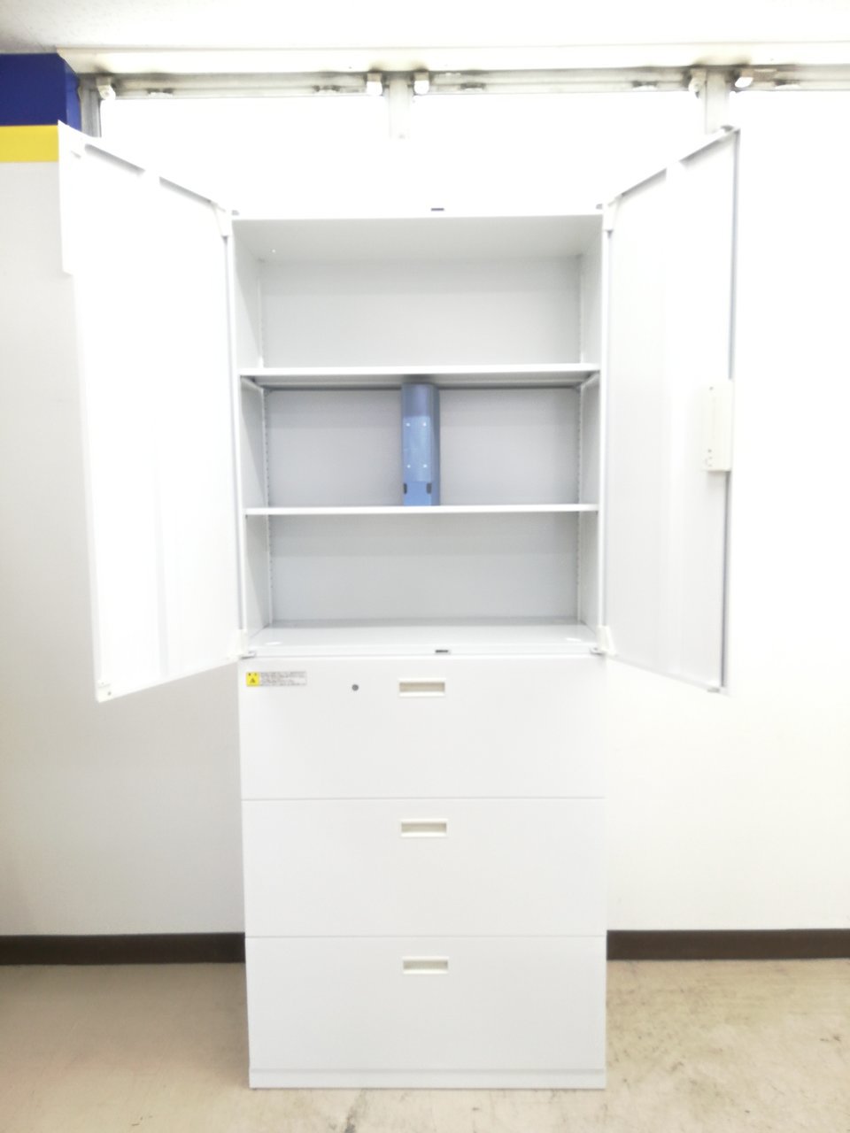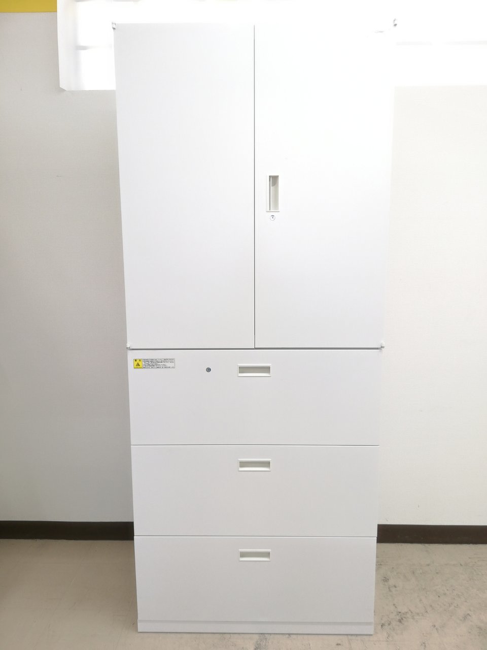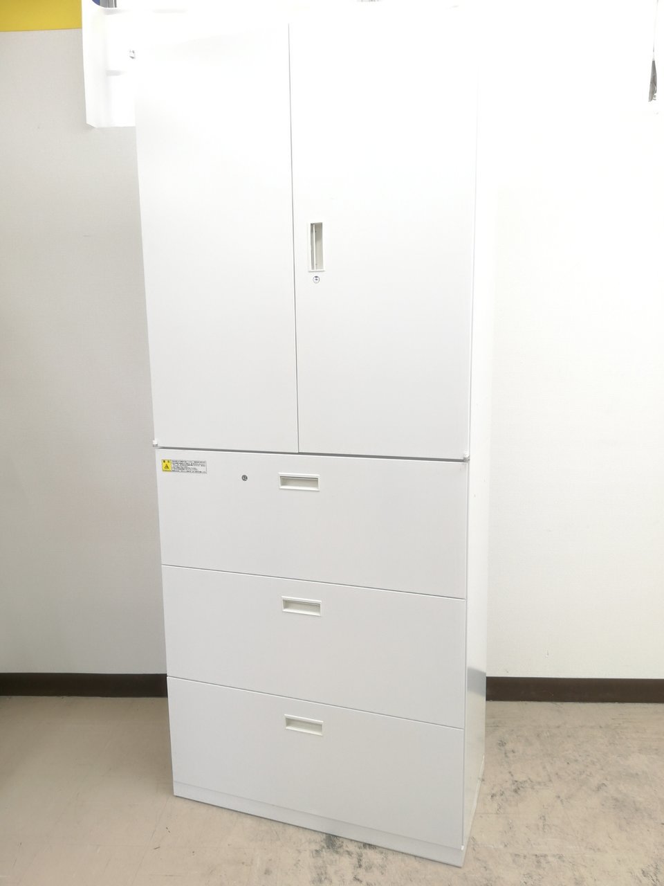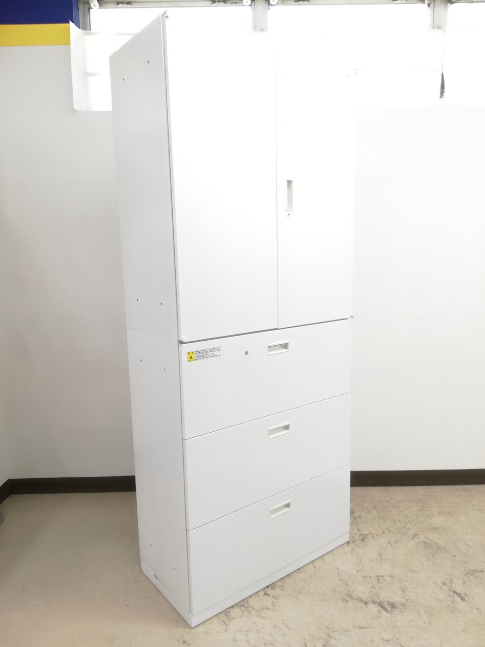 - 一部不具合ありそ引出の開閉不可、施錠不可、棚板無しといったの書庫の本来の効用を果たすための機能以外の一部が使用不可(例、扉、引出の開閉がしづらいなどがある。 )