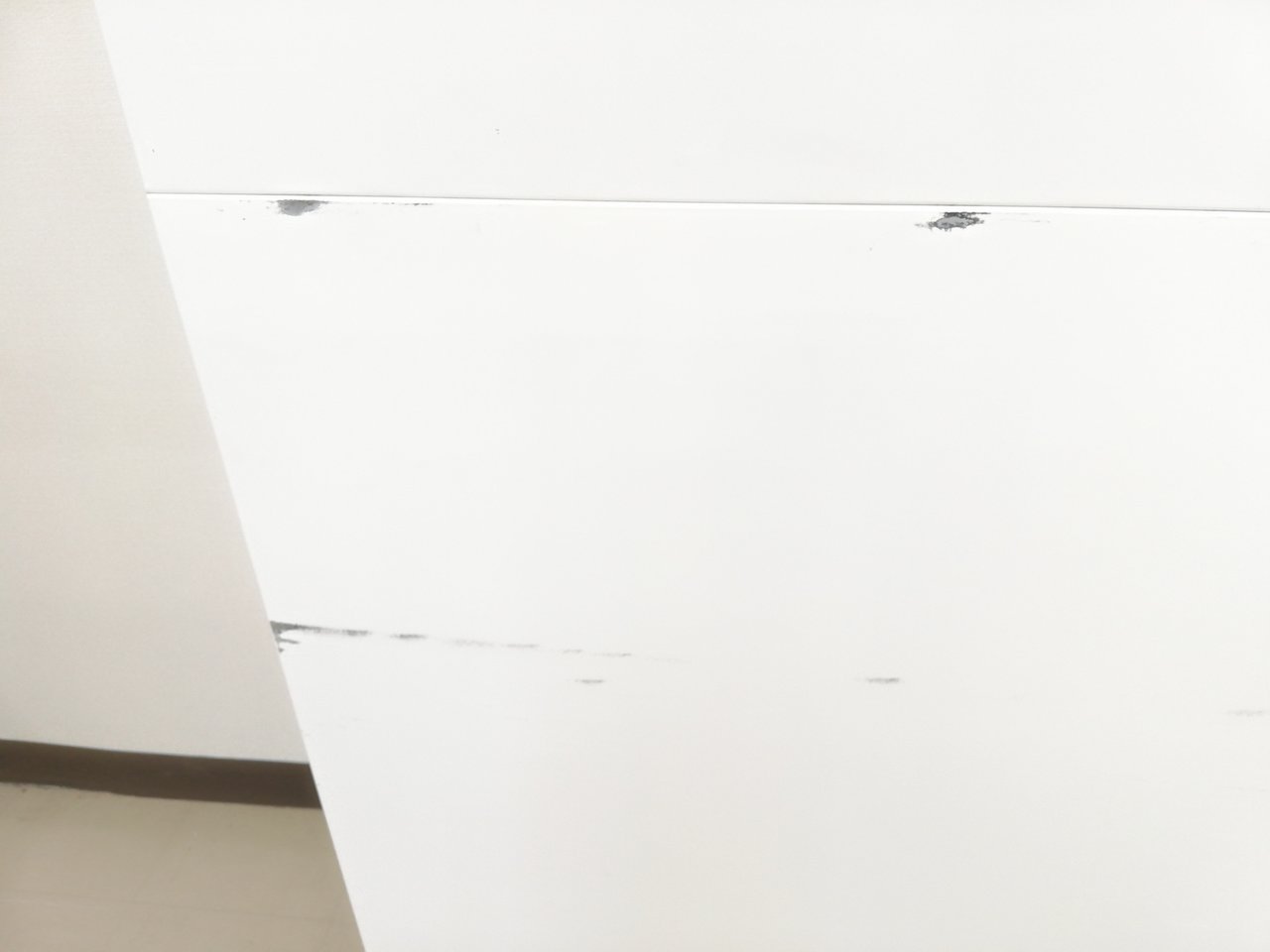 - あり黄ばみ・変色が広い範囲にうっすらある、または濃い黄ばみ・変色が一部ある。(例、天板、正面、背部、サイド部分にある。)
