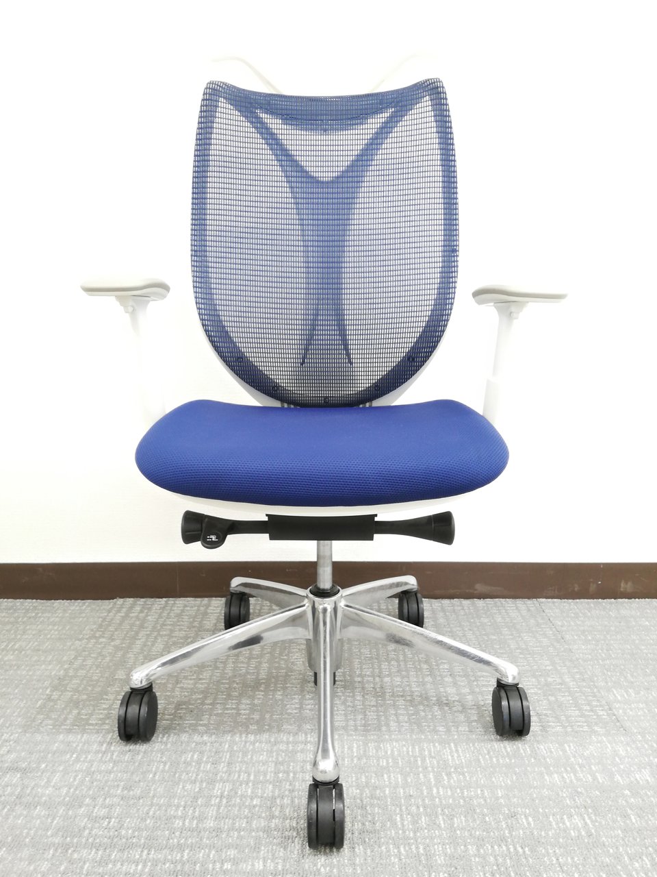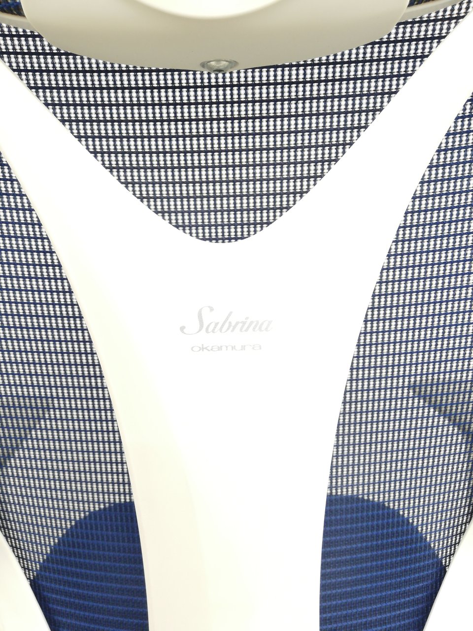 【前傾チルト付!流れるような美しいフォルムの最高級メッシュチェア!】■オカムラ(okamura)製 Sabrina(サブリナ) ハイバック 肘付き ■可動肘 ■背面メッシュ:アクアブルー 座面:ブルー ホワイトフレーム