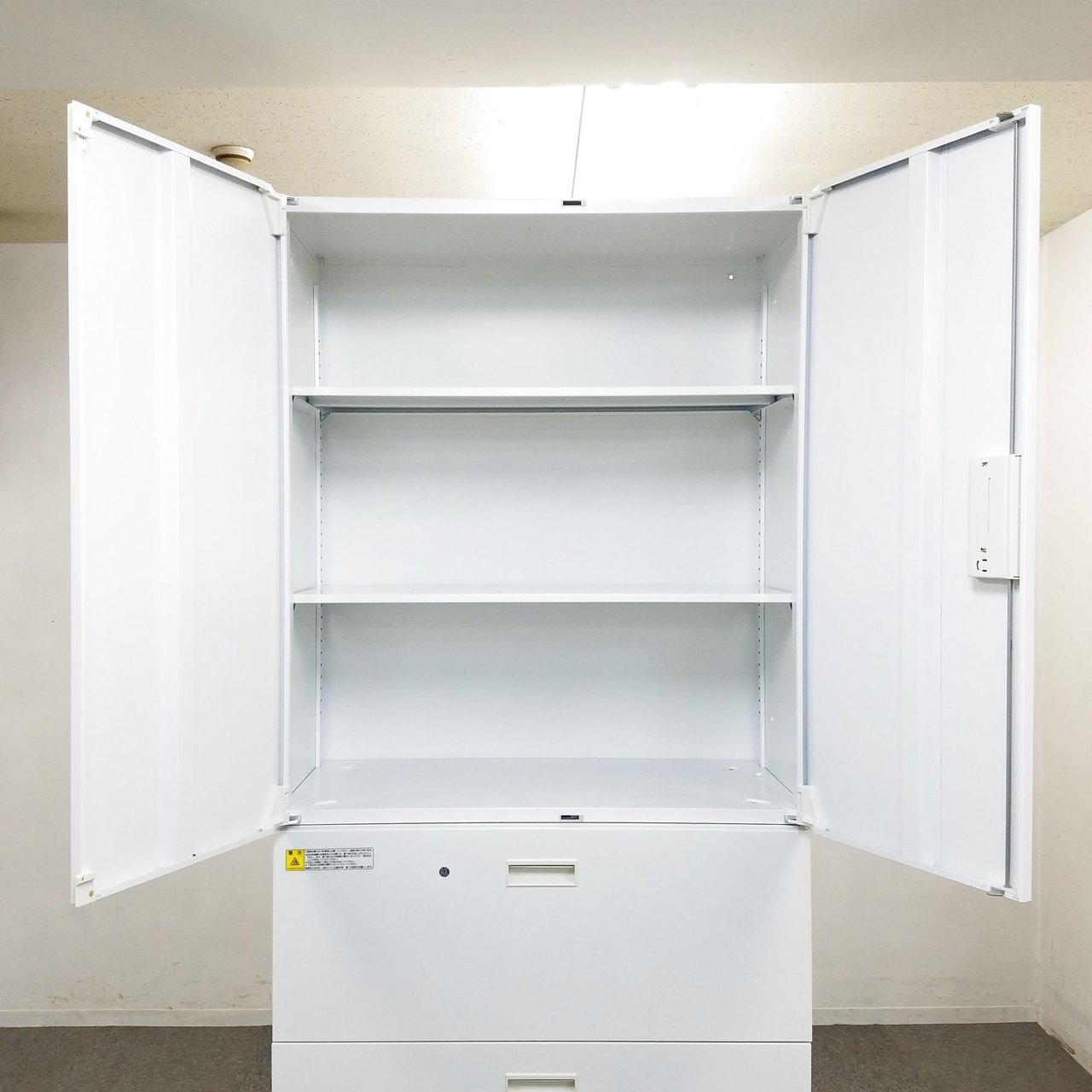 - 一部不具合ありそ引出の開閉不可、施錠不可、棚板無しといったの書庫の本来の効用を果たすための機能以外の一部が使用不可(例、扉、引出の開閉がしづらいなどがある。 )
