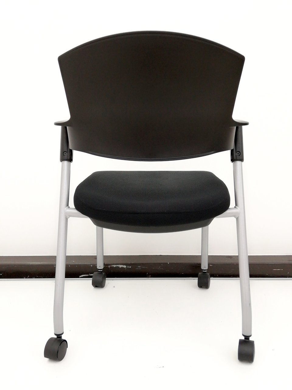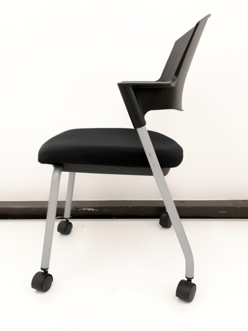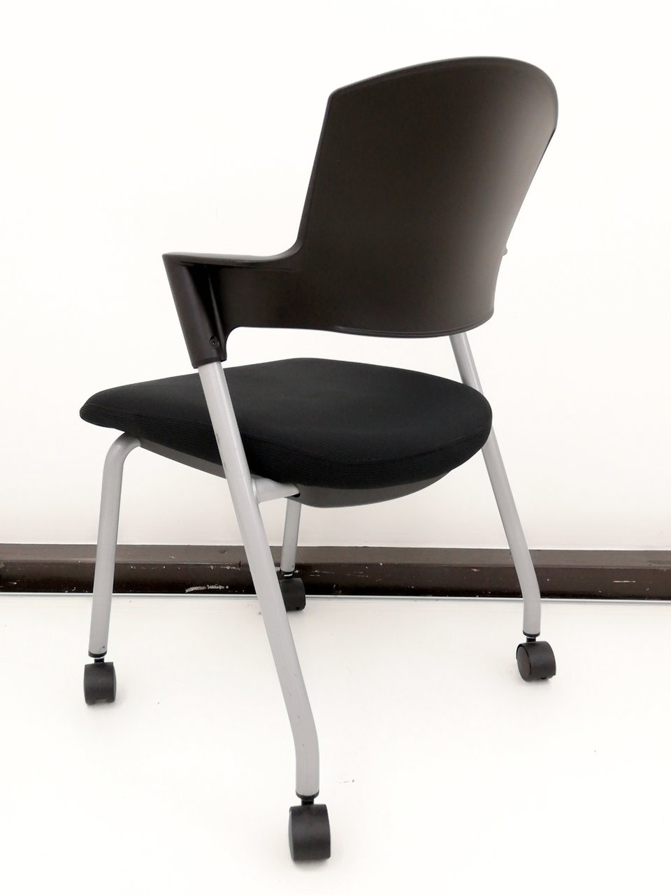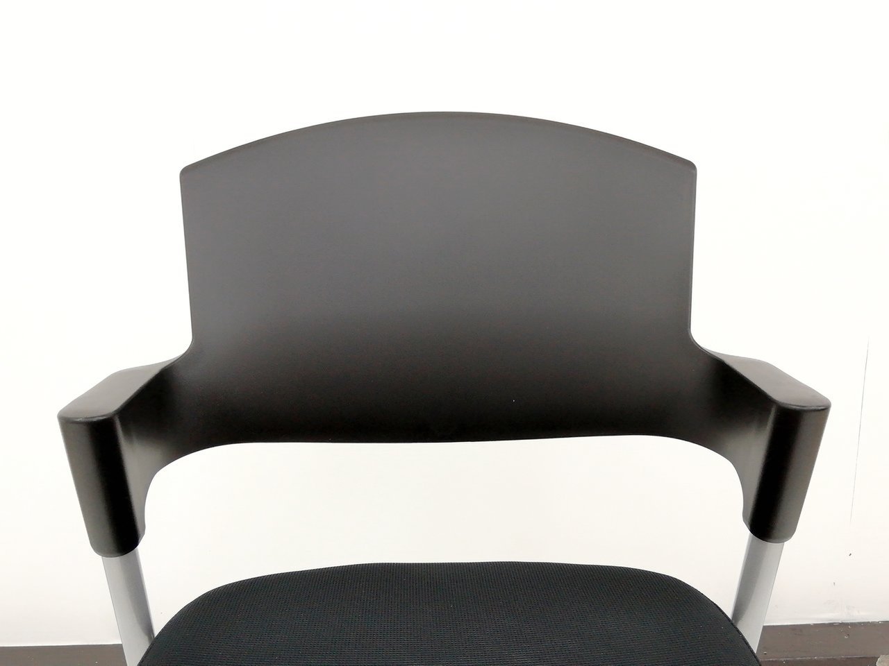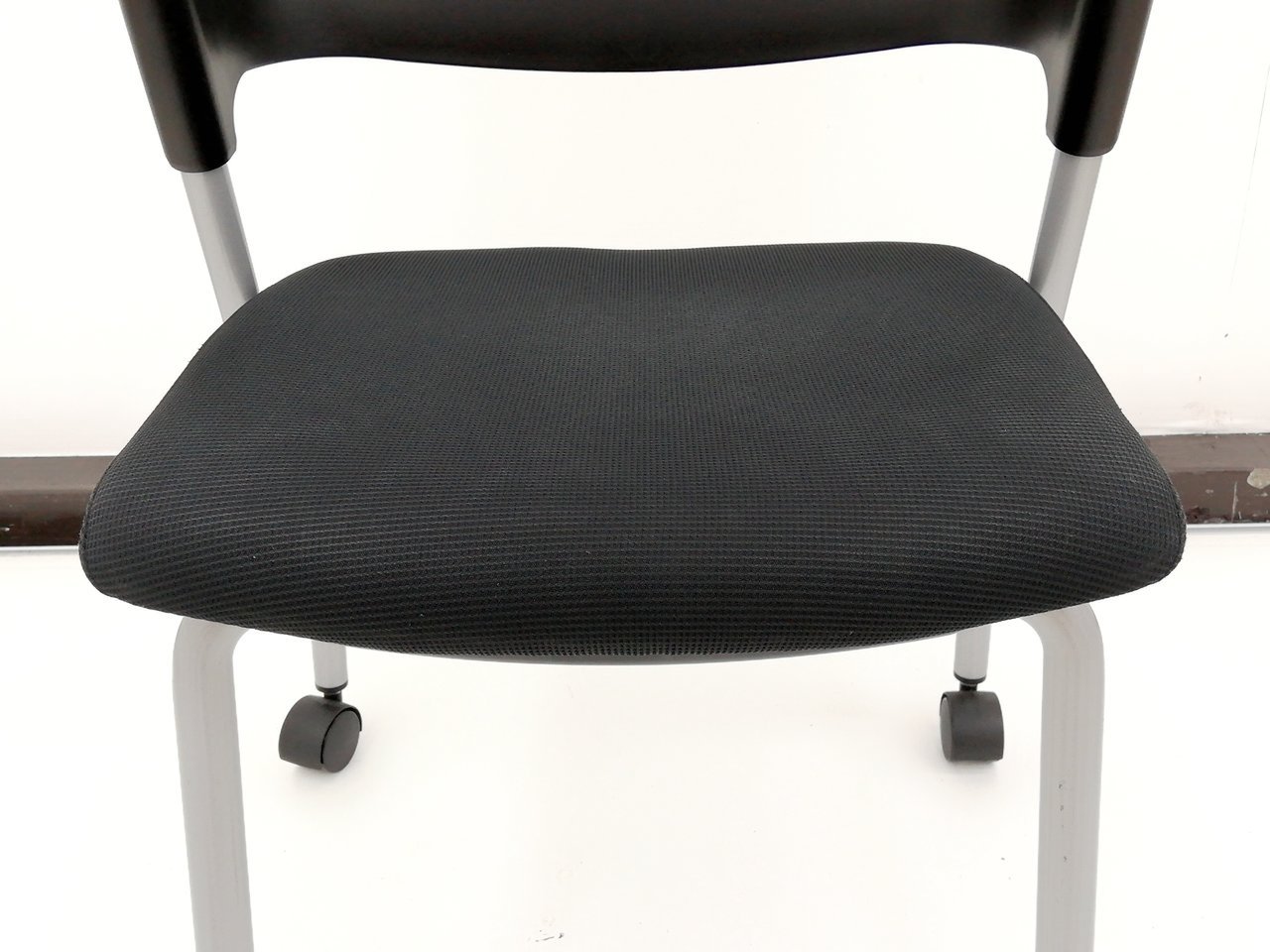【シンプルスマートなスタッキングチェア!分厚いクッションで長時間でも快適な座り心地!】■スタッキングチェア 肘付ミーティングチェア ■固定肘 ■キャスター付 ■ブラック ■背面樹脂/コクヨ(KOKUYO/プロッティ