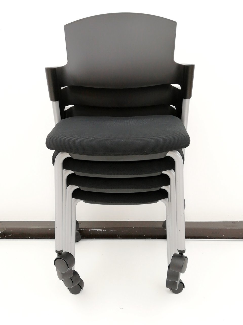 【セット商品(チェア×4脚)】【シンプルスマートなスタッキングチェア!分厚いクッションで長時間でも快適な座り心地!】/オススメ(おすすめ) /人気商品【弊社使用欄:A01037619】■スタッキングチェア 肘付ミーティングチェア ■固定肘 ■キャスター付 ■ブラック ■背面樹脂/コクヨ(KOKUYO/プロッティ