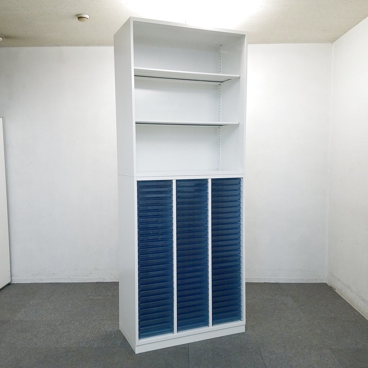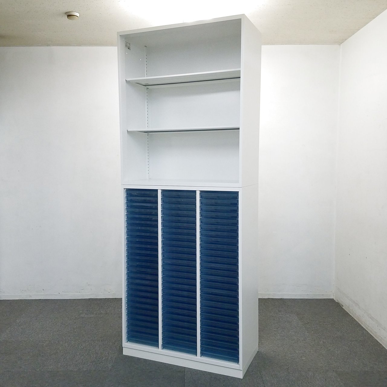 【3台入荷】コクヨ製の上下書庫入荷!中古 オフィス クリスタルトレイ キャビネット 棚 書庫 ホワイト- 大阪・堺店