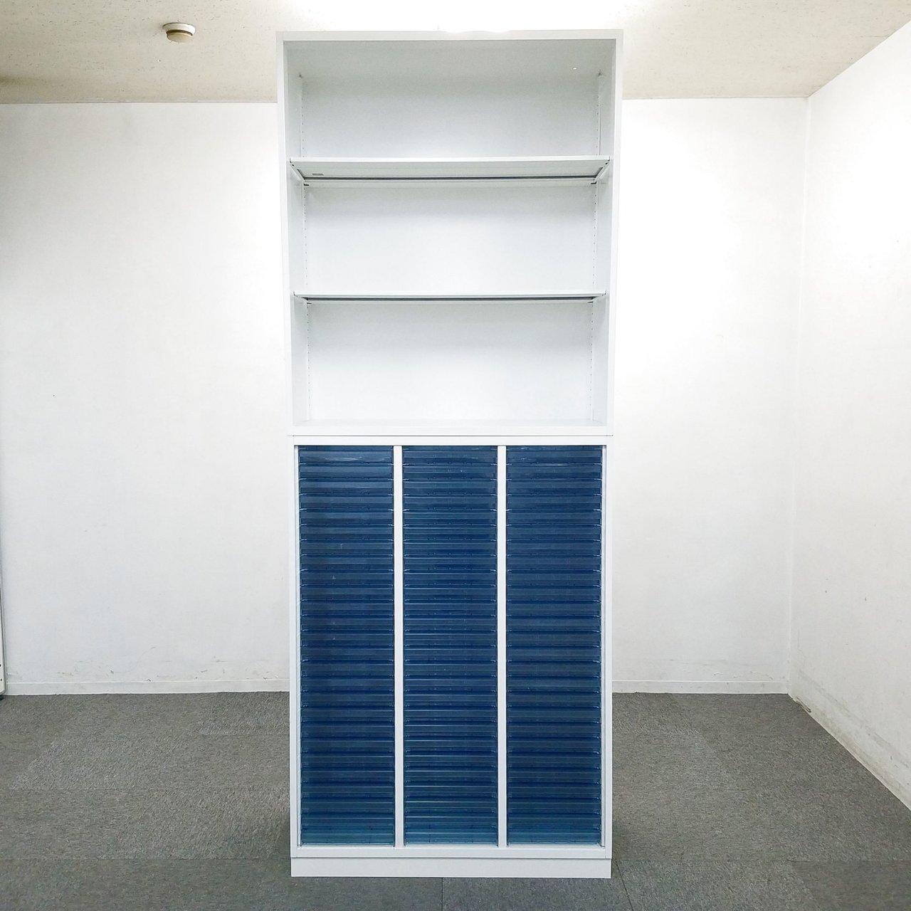 【両開き書庫とクリスタルトレイキャビネットの上下書庫セットの入荷です】 ■コクヨ/エディア/ホワイト 両開き+クリスタルトレー 深型3列11段 計33段