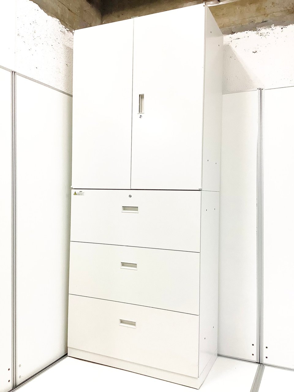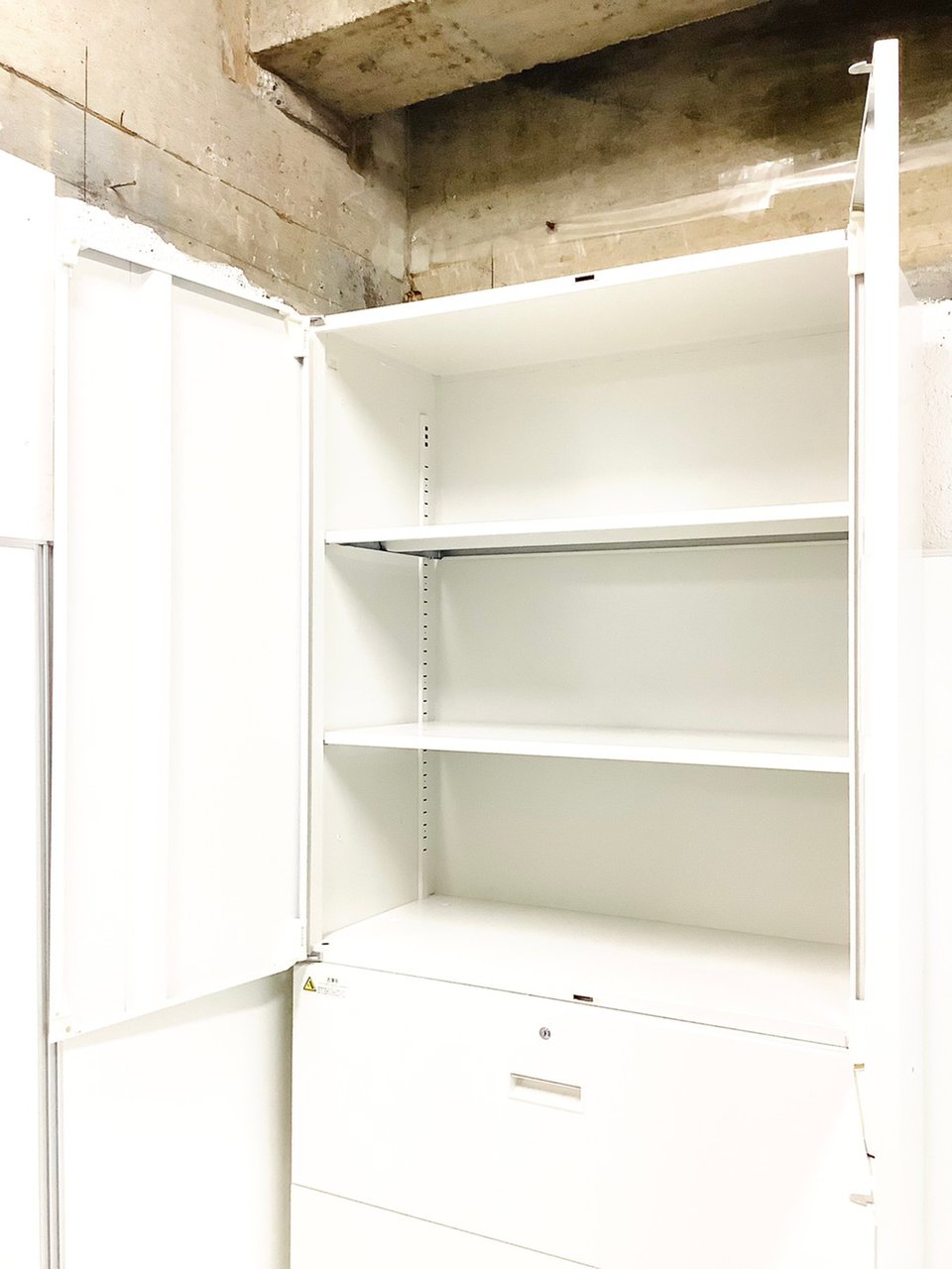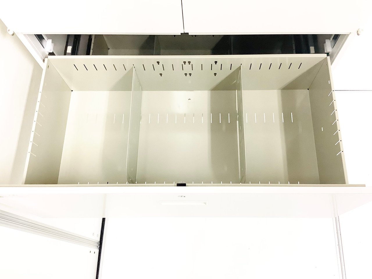 - 一部不具合ありそ引出の開閉不可、施錠不可、棚板無しといったの書庫の本来の効用を果たすための機能以外の一部が使用不可(例、扉、引出の開閉がしづらいなどがある。 )