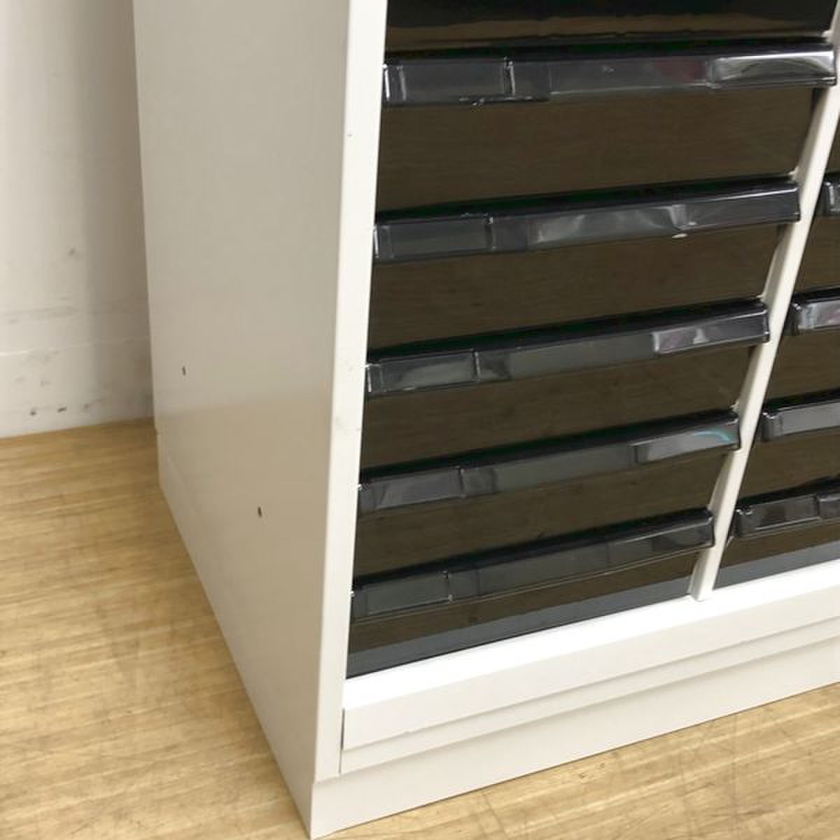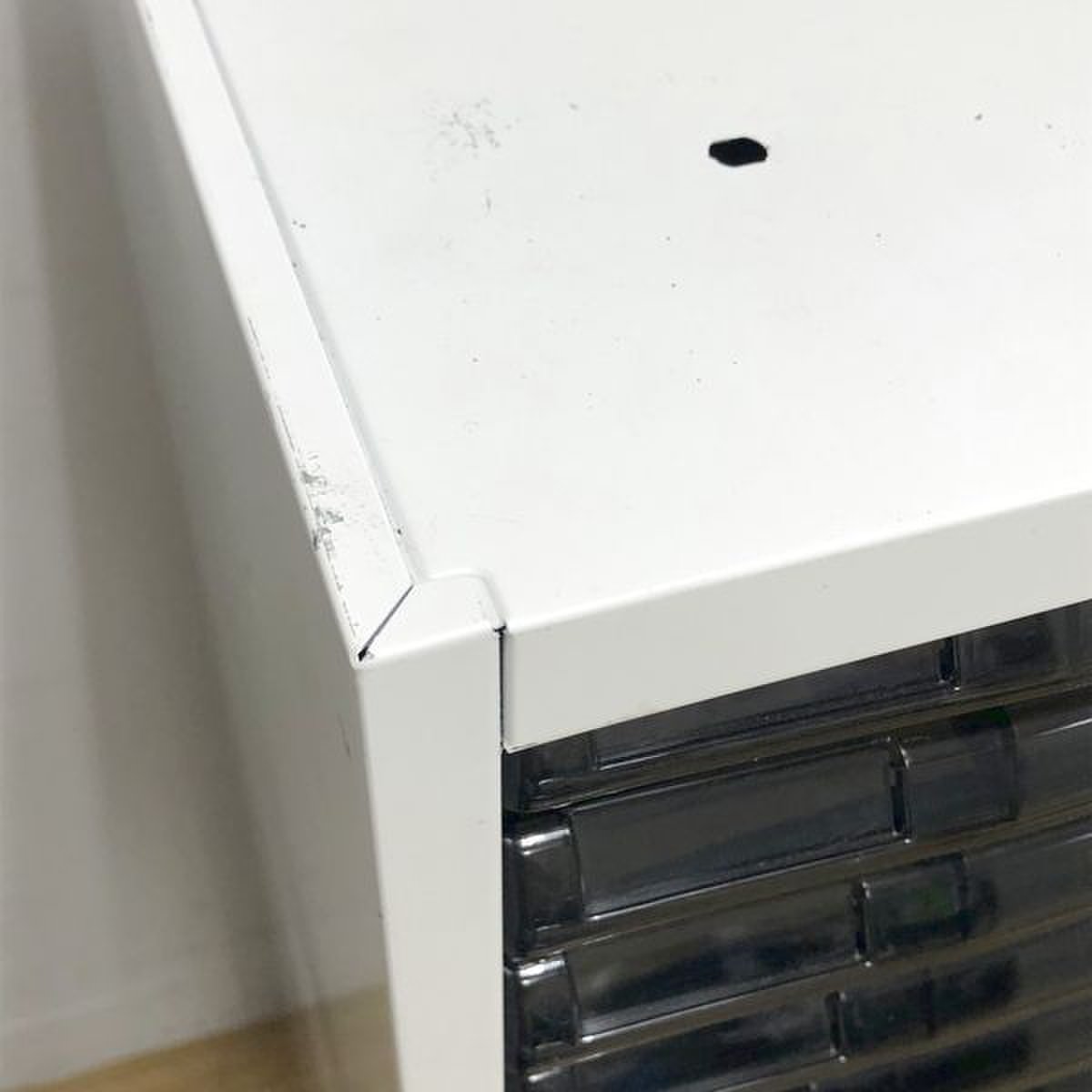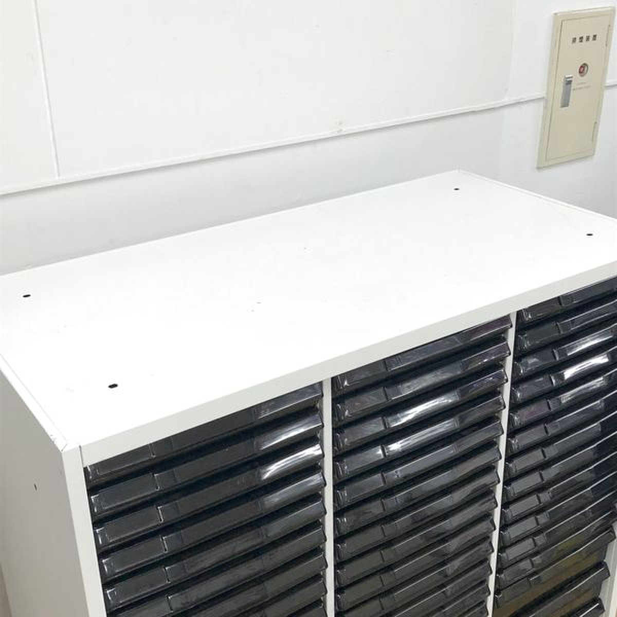 - 多数不具合あり引出の開閉不可、施錠不可、棚板無しといったその書庫の本来の効用を果たすための機能以外の多数が使用不可(例、扉、引出の開閉がしづらいなどがある。 )