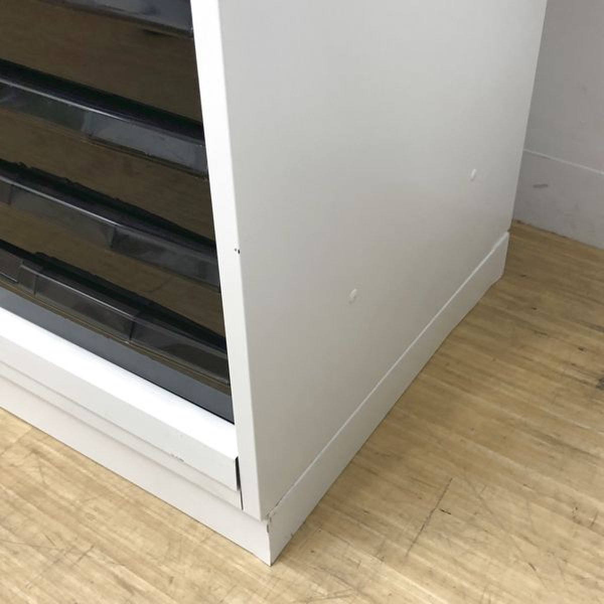 - 一部不具合ありそ引出の開閉不可、施錠不可、棚板無しといったの書庫の本来の効用を果たすための機能以外の一部が使用不可(例、扉、引出の開閉がしづらいなどがある。 )
