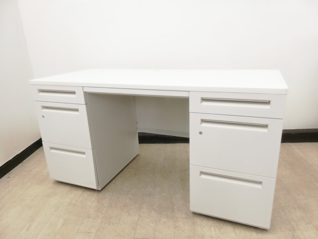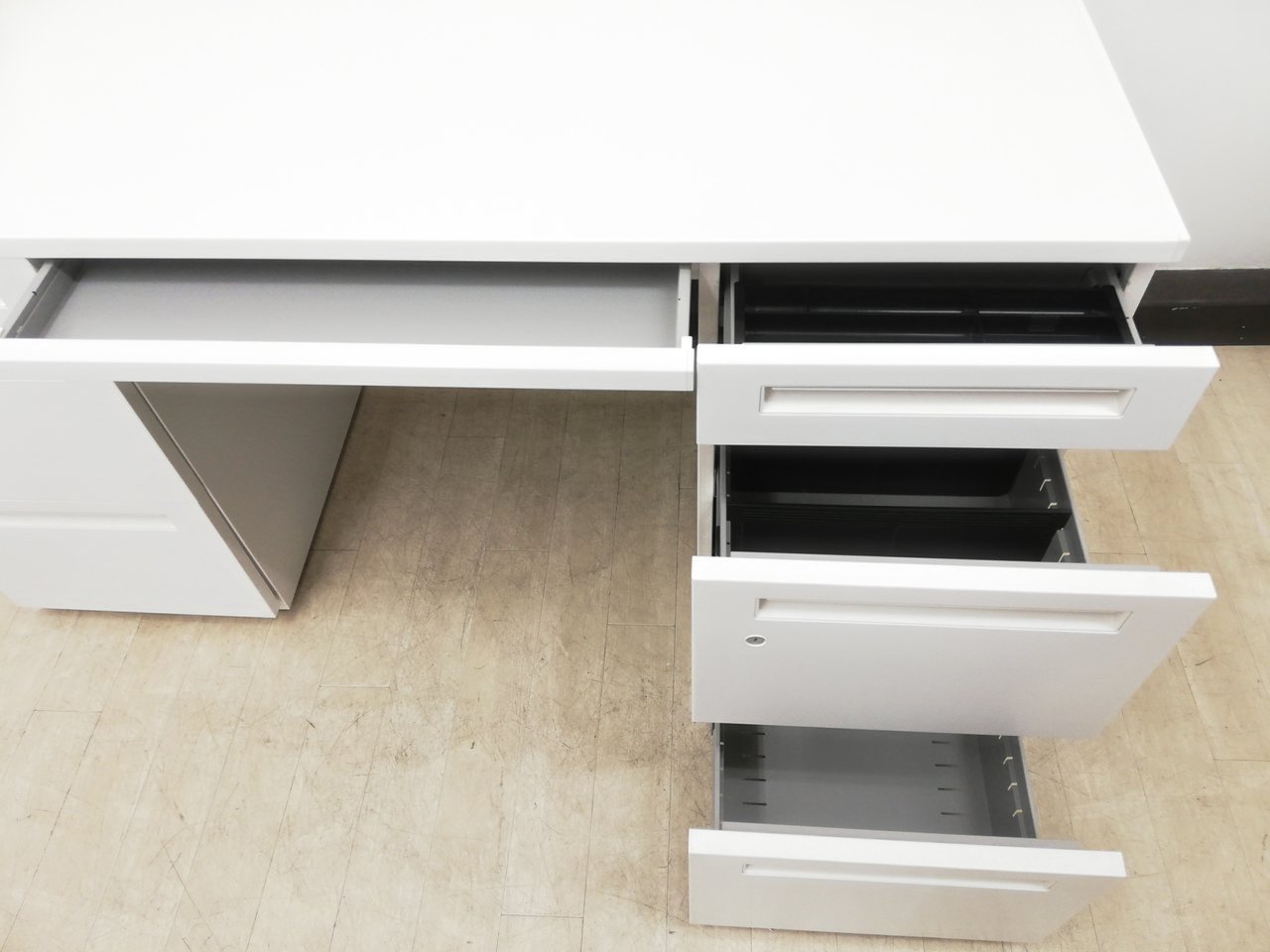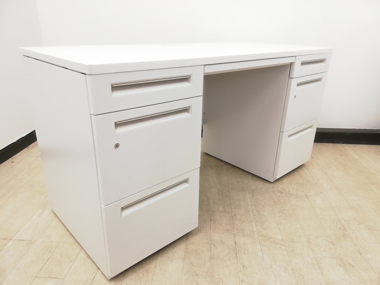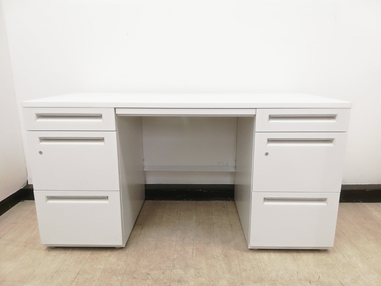 国内メーカー製 W1400mm両袖机 本体ホワイト ※高さ700mm