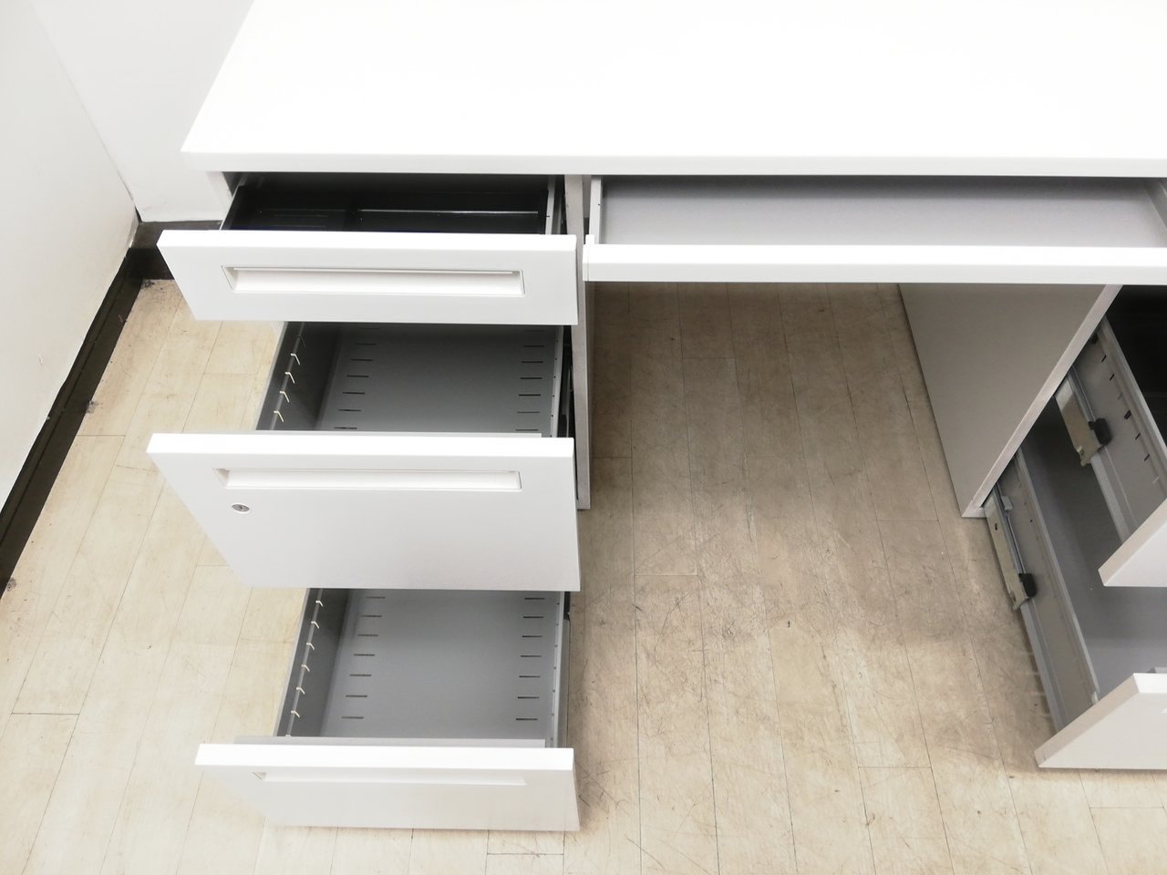 【先行商品!】【広々としたワークスペースと収納力で作業効率アップ!上長デスクとしてもオススメ!】■ウチダ(UCHIDA)製 スカエナシリーズ 両袖デスク W1400×D700mm ■配線Kタイプ ■ホワイト ■シリンダー錠