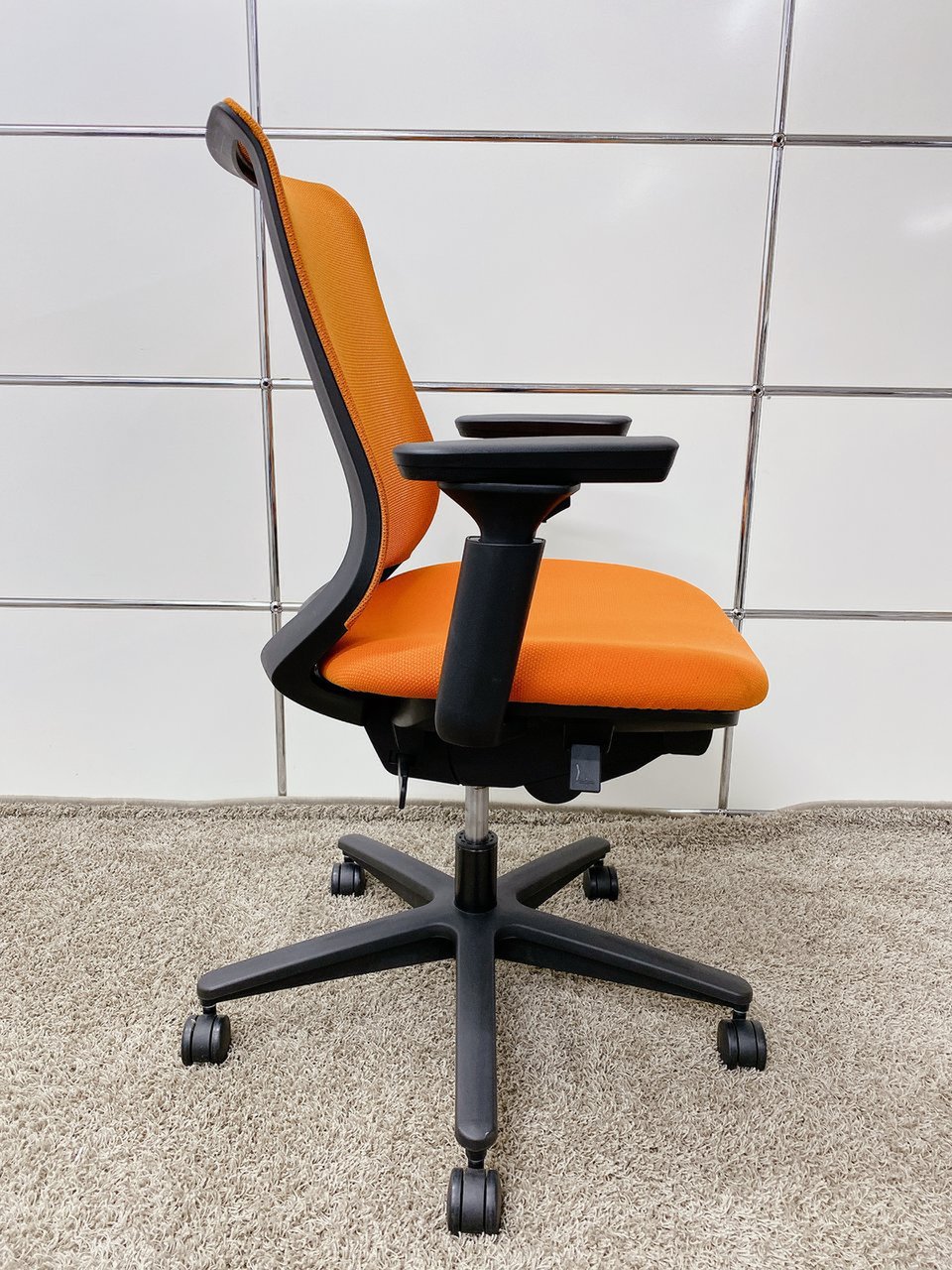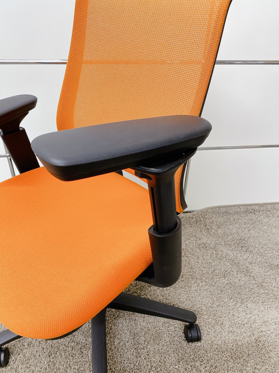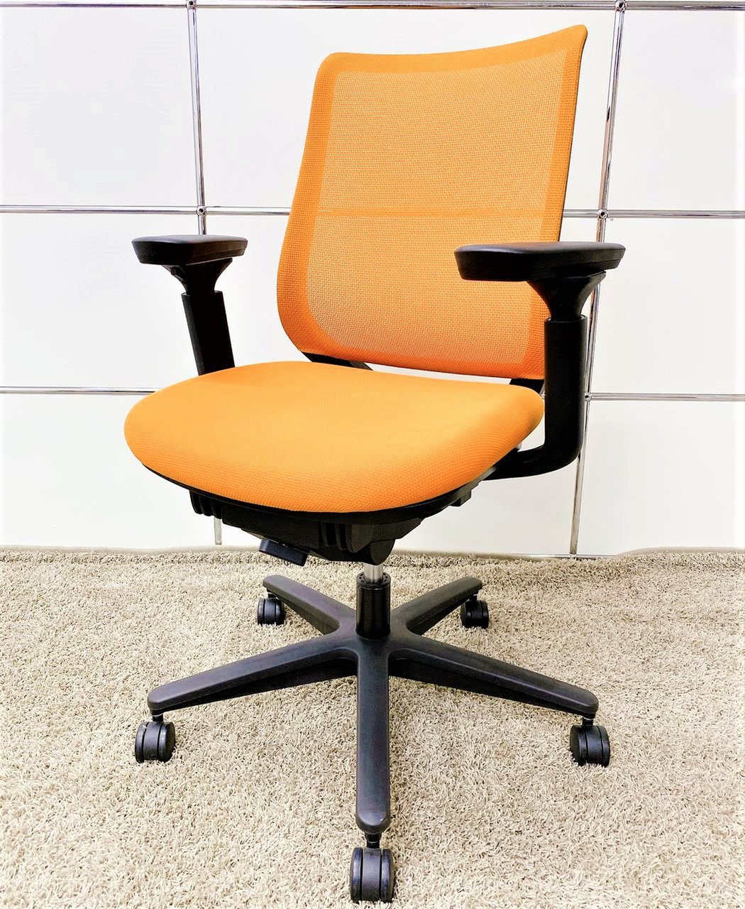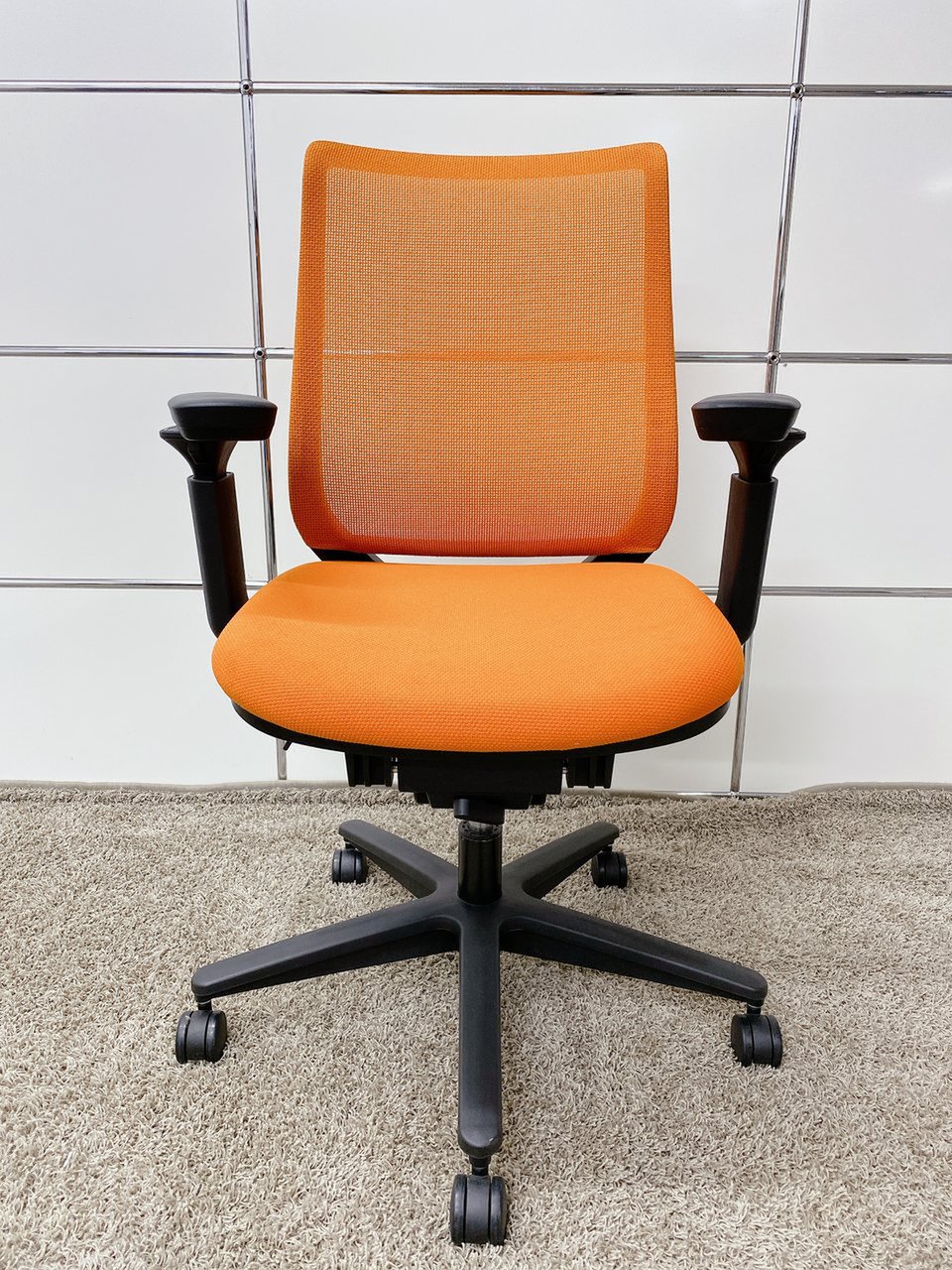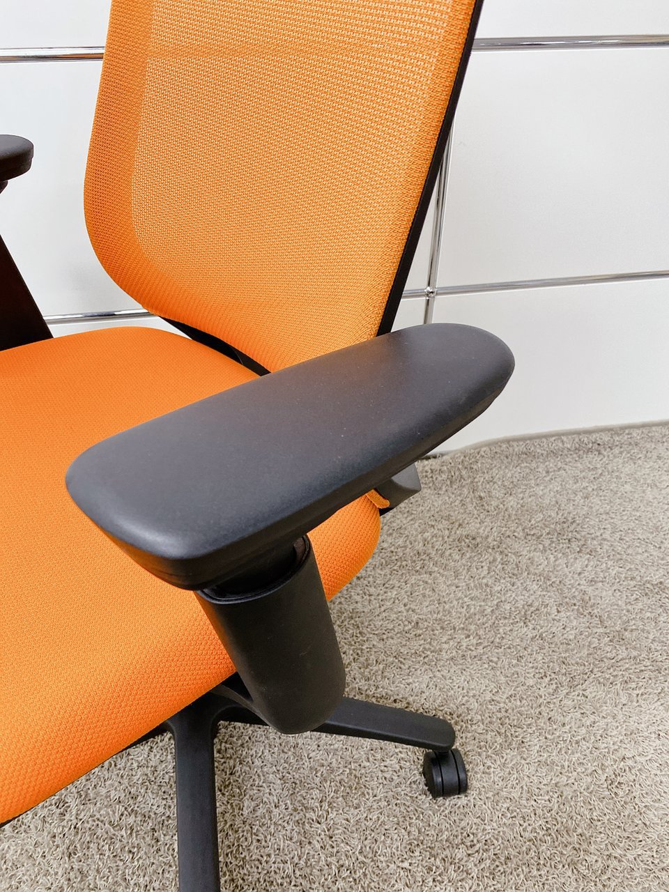 クッション性抜群で良質な座り心地!国内トップクラスメーカーの人気ミドルクラスチェア! ■コクヨ/ミトラ(Mitra)/オレンジ 肘付き ローバック 背面座面クッション ■可動肘付
