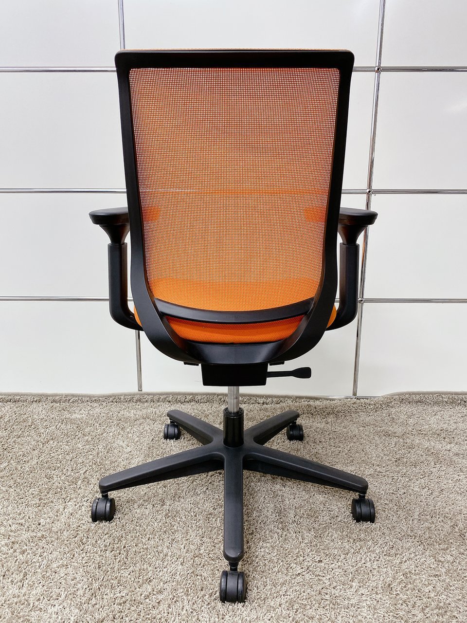 【テレワークにも最適!快適な座り心地と充実機能!】■コクヨ(KOKUYO)製 ミトラ(Mitra)チェア 肘付き ローバック 背面座面クッション ■可動肘付 ■オレンジ×ブラックシェル