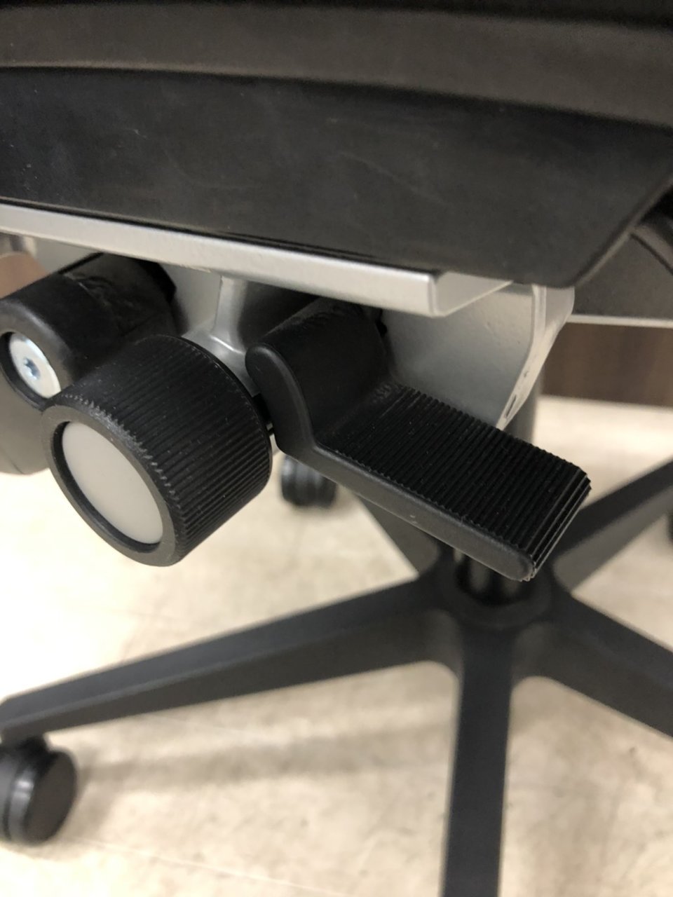 快適な座り心地に不可欠な調節機能である、上下昇降、座面の奥行き調整、リクライニングなどを備えており、操作もわかりやすく好評です。 特に、座面の奥行きは、座面下の左右に通った細いバーで調整でき、座ったままで軽やかに滑るように調整が可能です。 価格面では、新品では高めですが、中古は流通も多く、定価の3割前後の価格で高級チェアの座り心地を手に入れることができます!