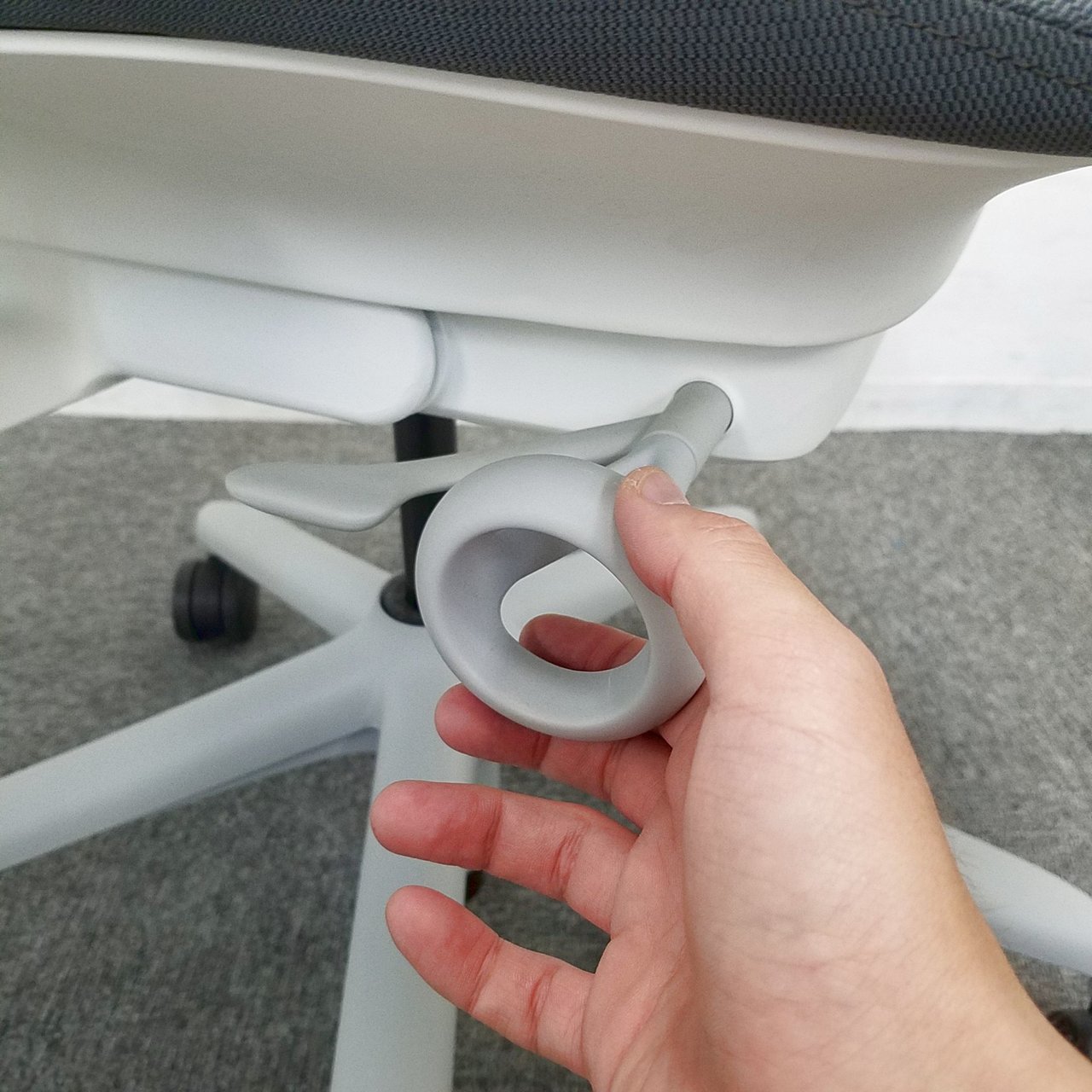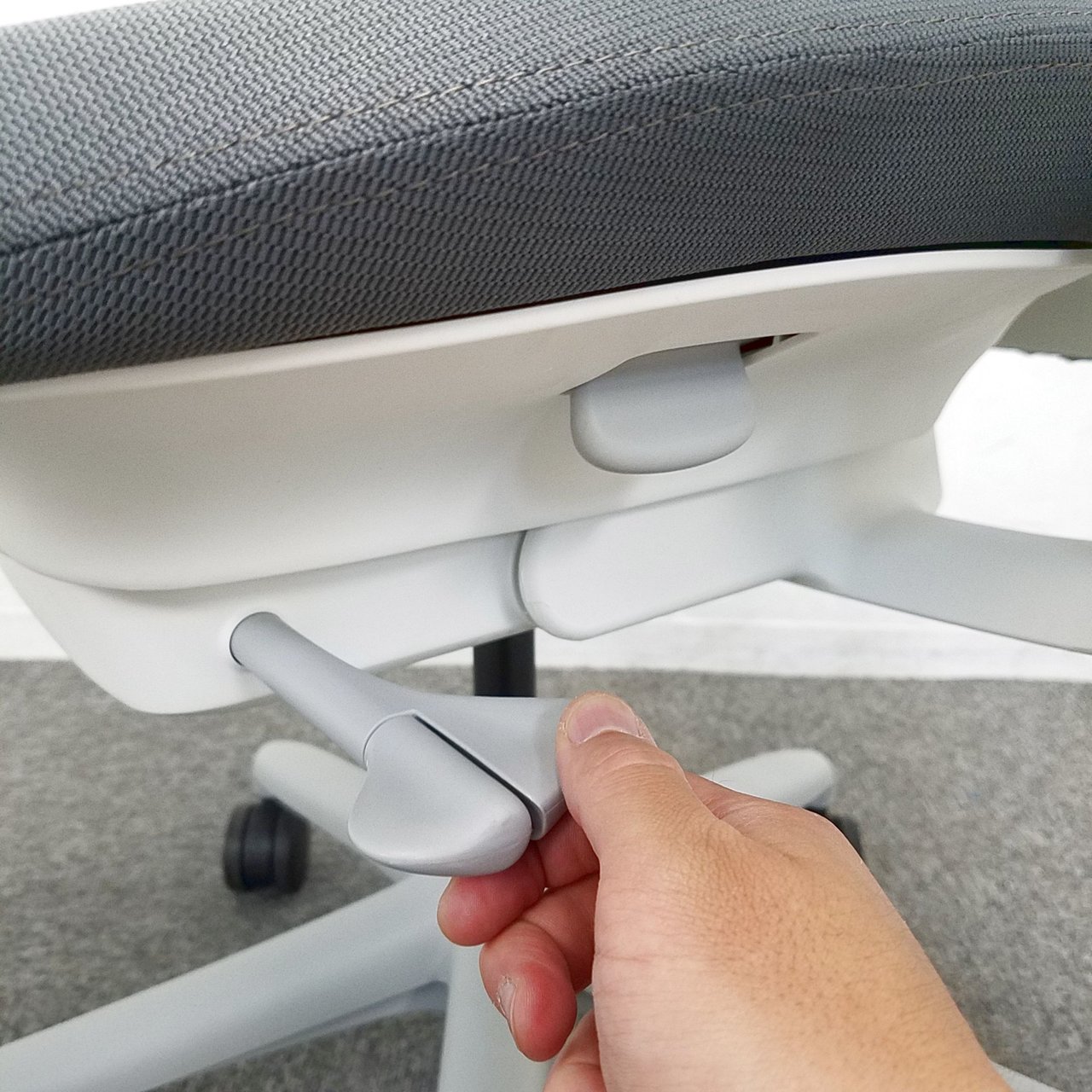 - 座ったまま、レバー操作一つで、簡単に座面を前傾できます。前傾姿勢を取ることが多いデスクワーカーに最適です。