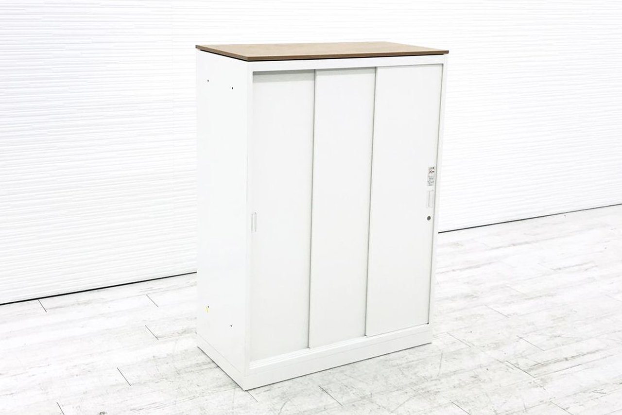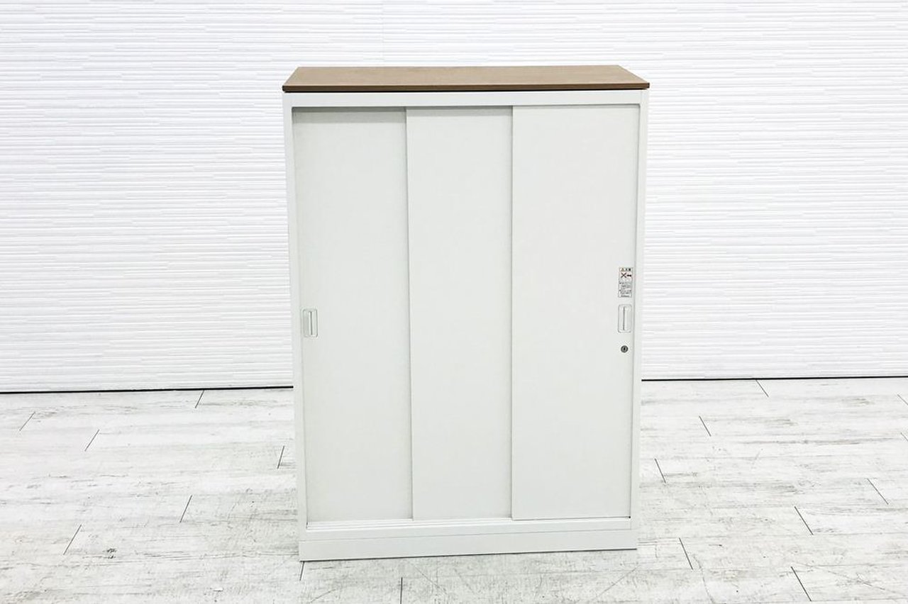 オカムラ製 人気レクトラインシリーズ ホワイト シリンダー W800xD450XH1050 3枚引戸 ※ベースなし 3枚引き違い書庫!!