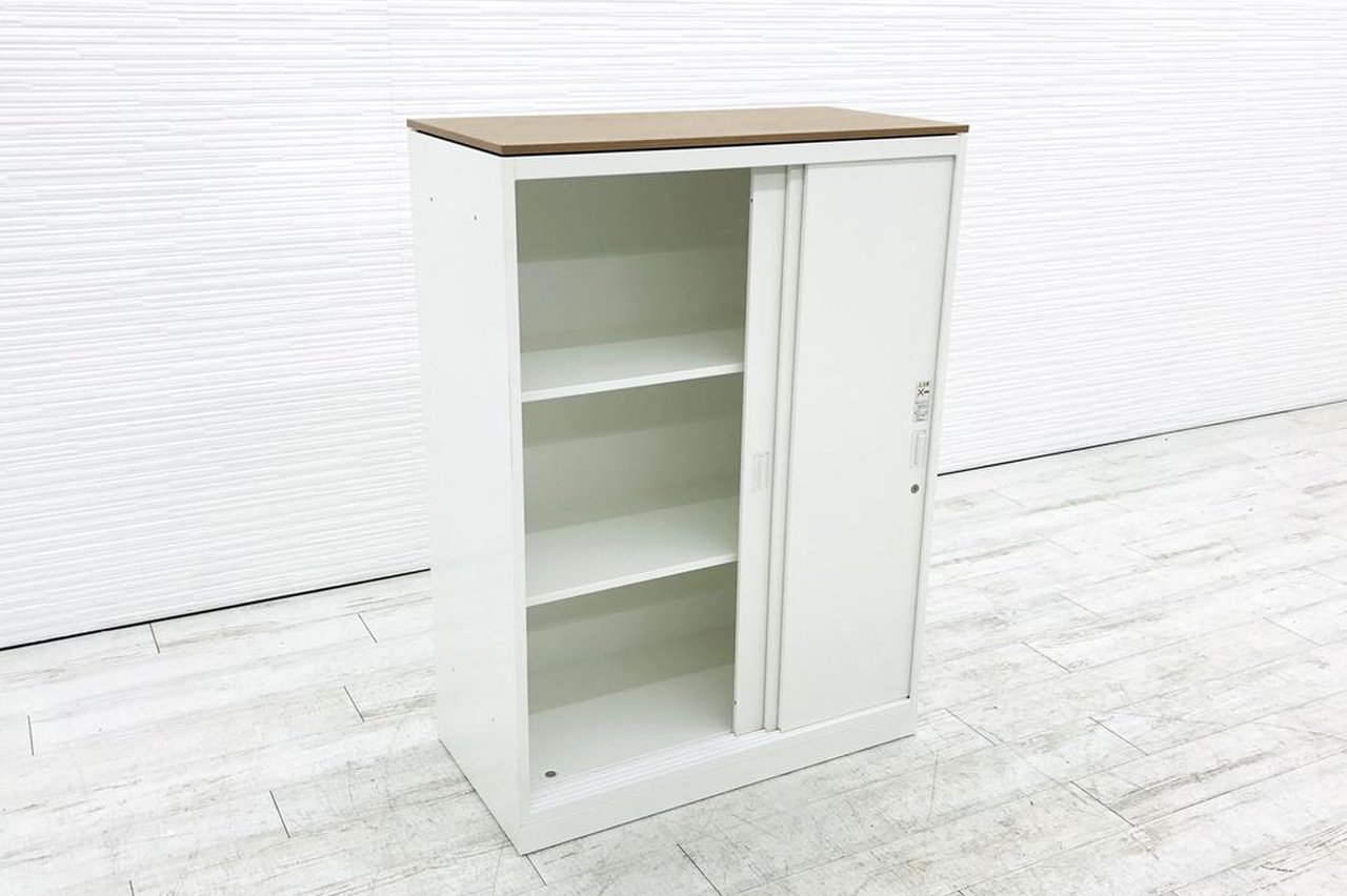 カウンターとしてもおすすめ!使い勝手抜群の天板付き2枚引き違い書庫が入荷! ■オカムラ/レクトライン/ホワイト 2枚引き戸 ホワイト天板付き