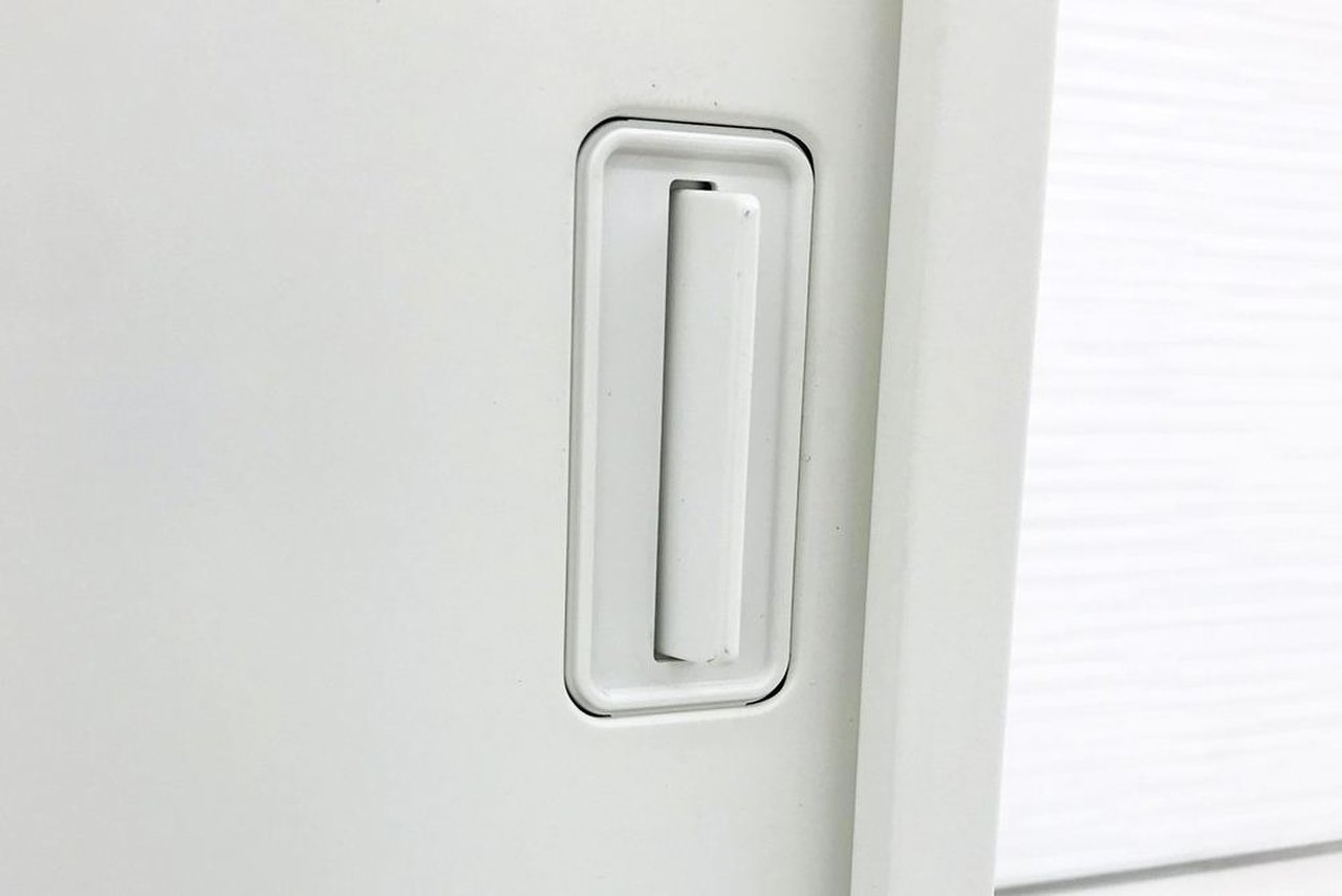 2枚引き戸書庫 オカムラ レクトライン 鍵付き シリンダー錠 ホワイト 天板無し スライド式の扉のため導線を邪魔しません