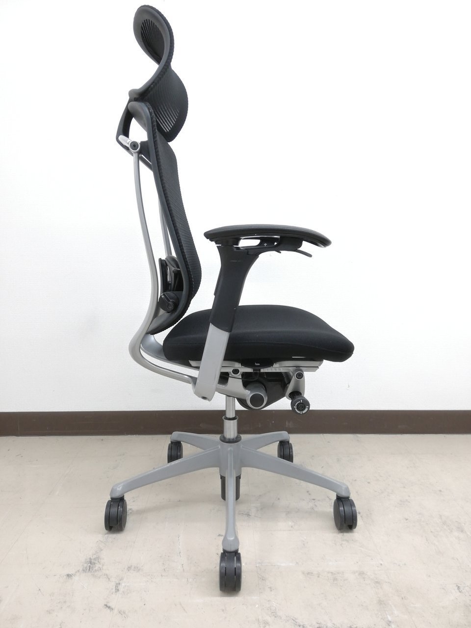 【世界で認められた革新的タスクチェア!人間工学に基づいた快適な座り心地を実現!】■オカムラ(okamura)製 コンテッサ(Contessa)チェア ハイバック 肘付き 背面メッシュ ■可動肘・ランバーサポート付 ■ブラック ※肘スレ有