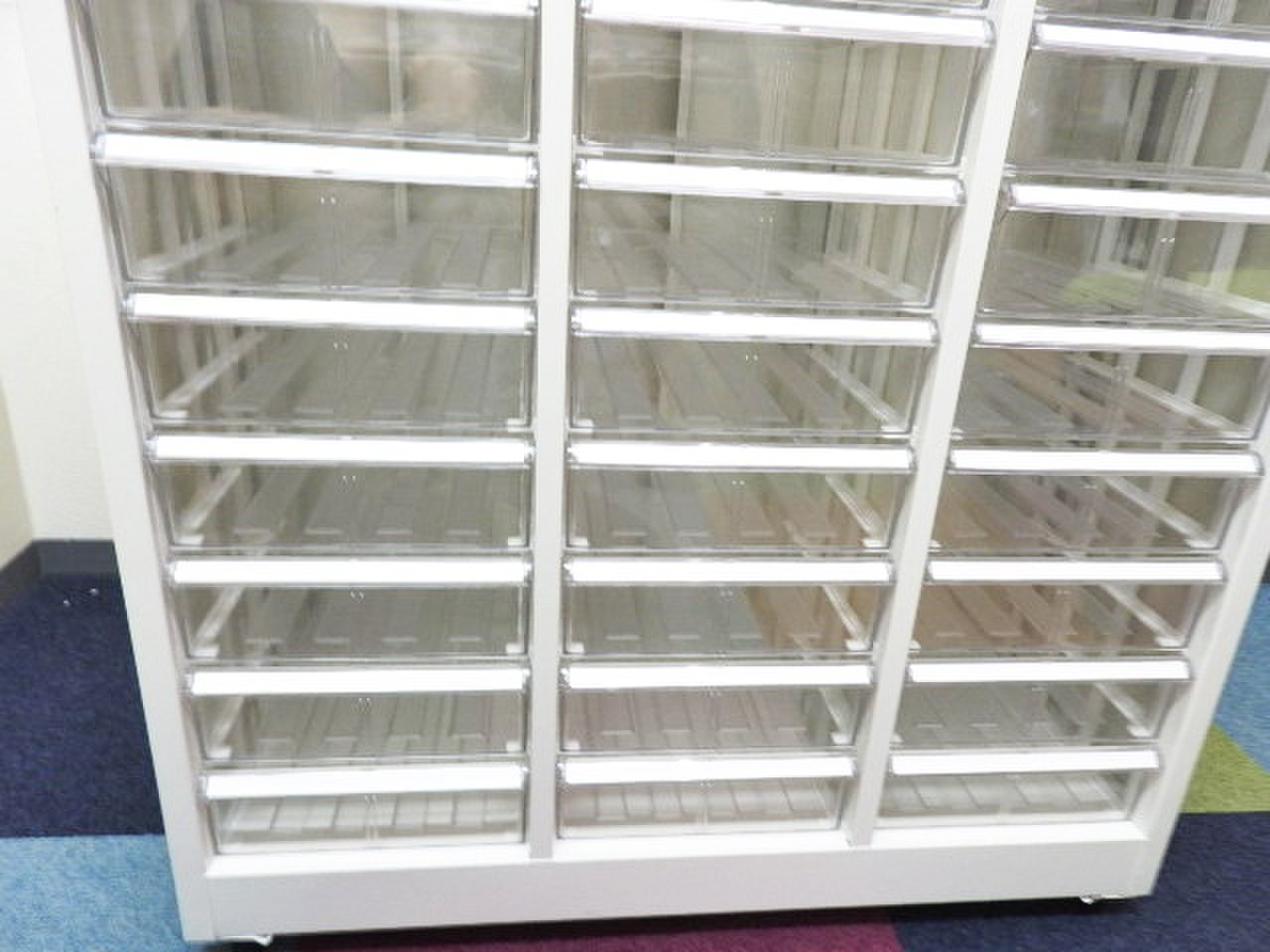 - 多数不具合あり引出の開閉不可、施錠不可、棚板無しといったその書庫の本来の効用を果たすための機能以外の多数が使用不可(例、扉、引出の開閉がしづらいなどがある。 )