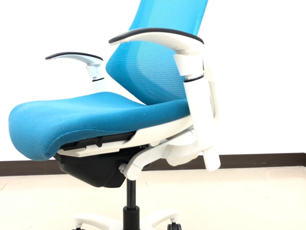 【入替セール】【姿勢の変化に寄り添う、体にフィットする快適な座り心地!】■イトーキ(ITOKI)製 エフ(f)チェア 肘付き ハイバック クロスバックタイプ ■可動肘 ■ストロングブルー×ブラックシェル