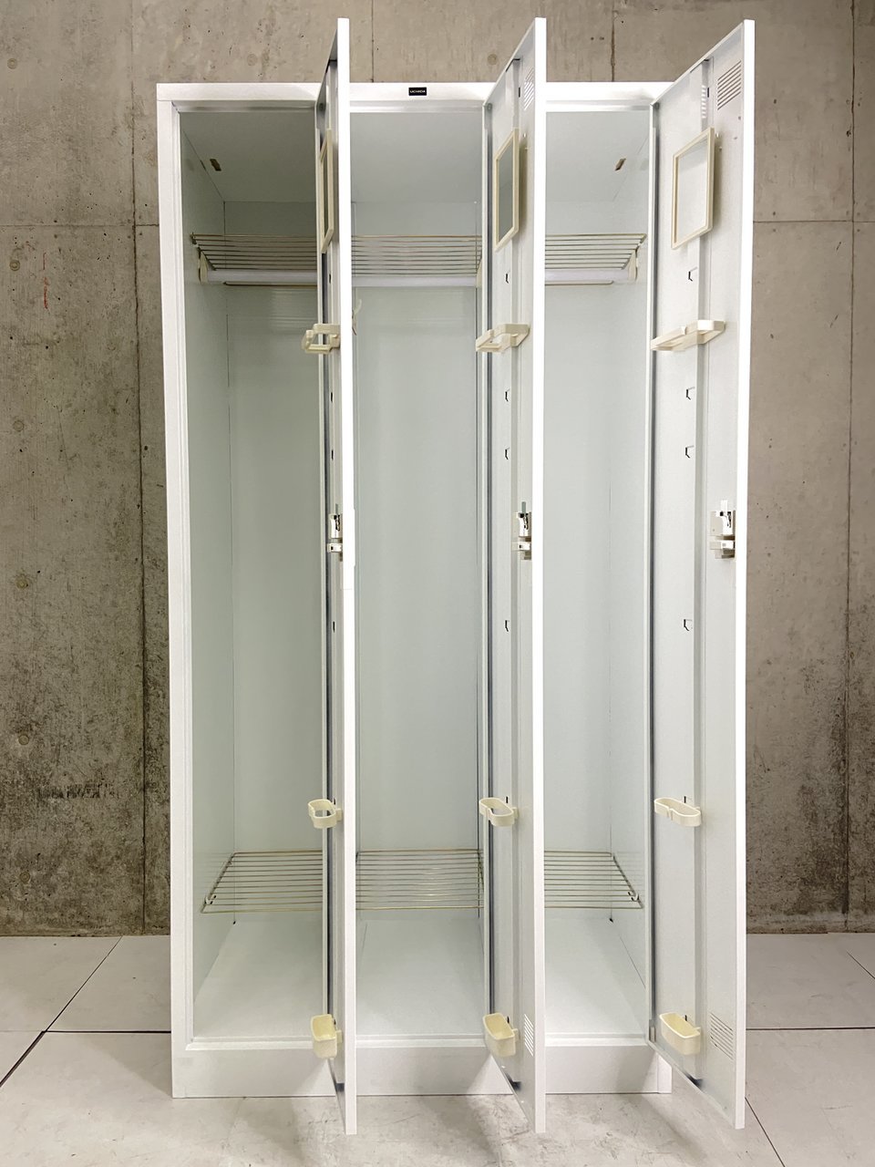 【レアな3人用ロッカー!】内田洋行/3人用/シリンダー錠/ホワイト- つくば店
