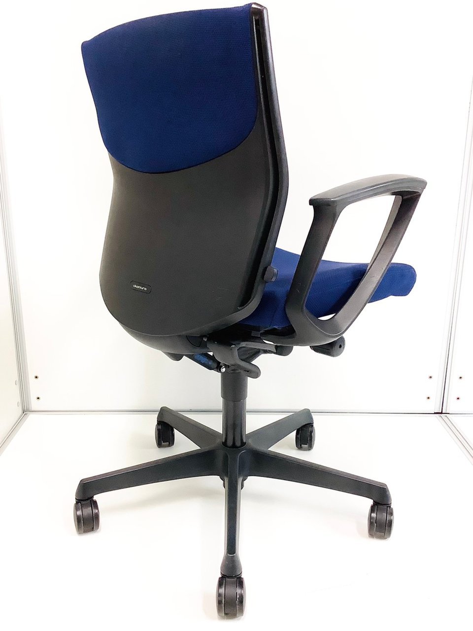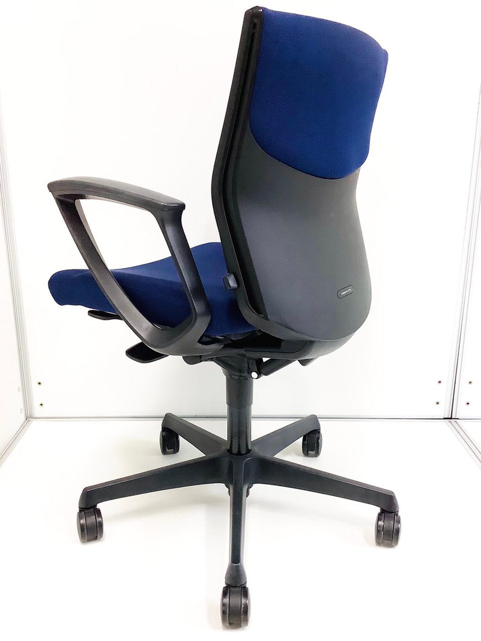 【在庫入替セール】オカムラ エスクード ローバックモデル クッションタイプ デザインアーム付き ブルー×グレーフレーム ランバーサポート搭載で安定感のある機能面と座り心地