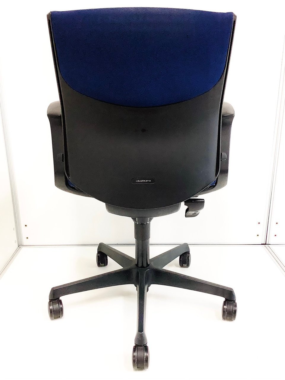 【長時間のデスクワークもランバーが快適にサポート!オフィスの定番チェア!起業や入替に!】■オカムラ(okamura)製 エスクードチェア (ESCUDO) ローバック 肘付き ■サークル肘 ランバー付 ■ダークブルー×ブラックシェル