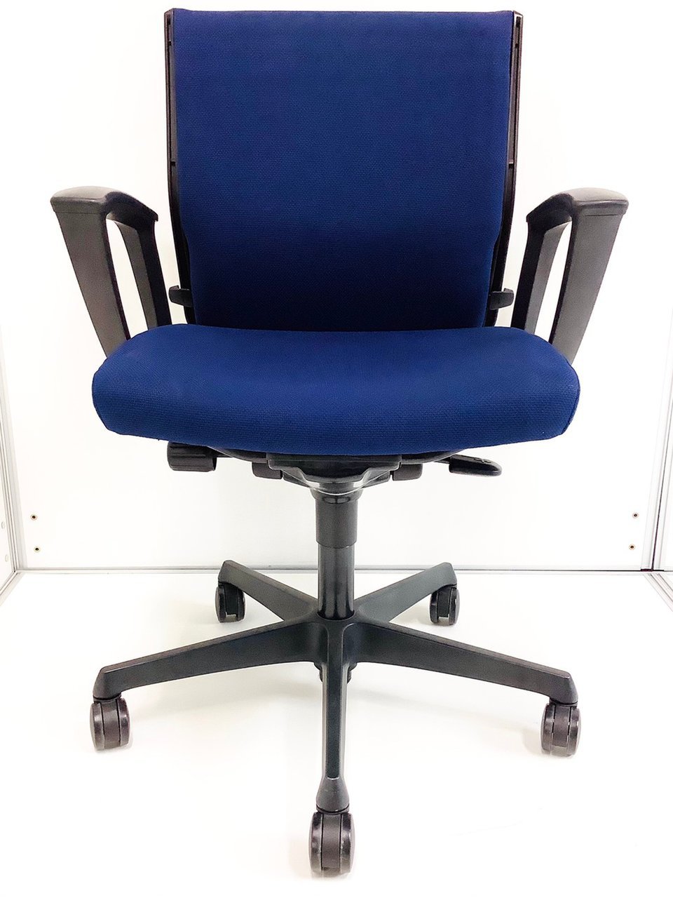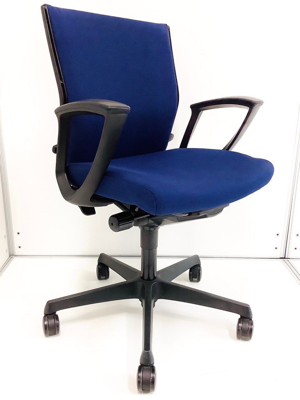 【在庫入替セール品!】【長時間のデスクワークもランバーが快適にサポート!オフィスの定番チェア!起業や入替に!】■オカムラ(okamura)製 エスクードチェア (ESCUDO) ローバック 肘付き ■サークル肘 ■ダークブルー ■ランバー付き