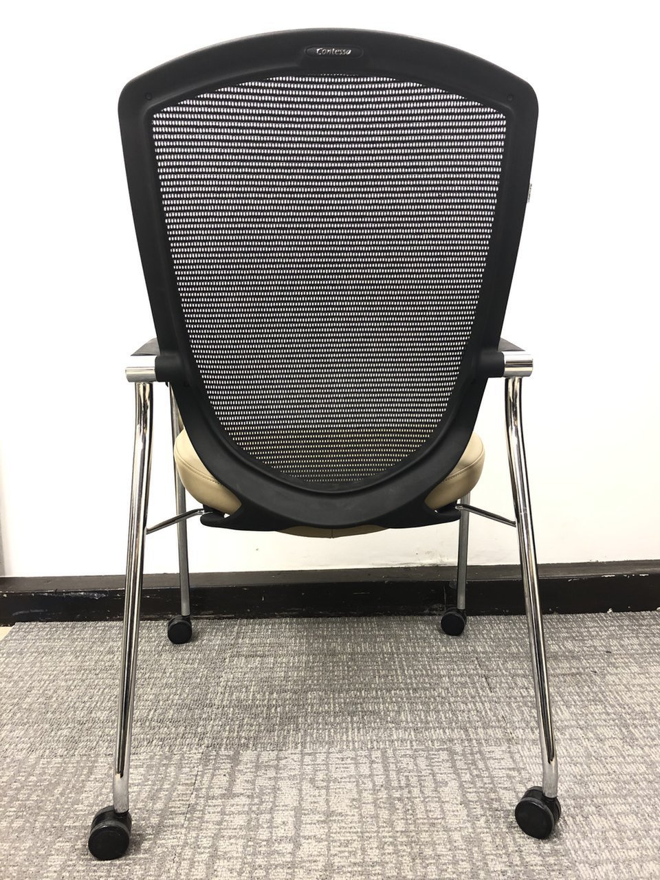 【レア商品!!】オカムラ|コンテッサ|ベージュカラー|肘付きミーティングチェア|キャスター付き【オフィスチェア店】- オフィスチェア店