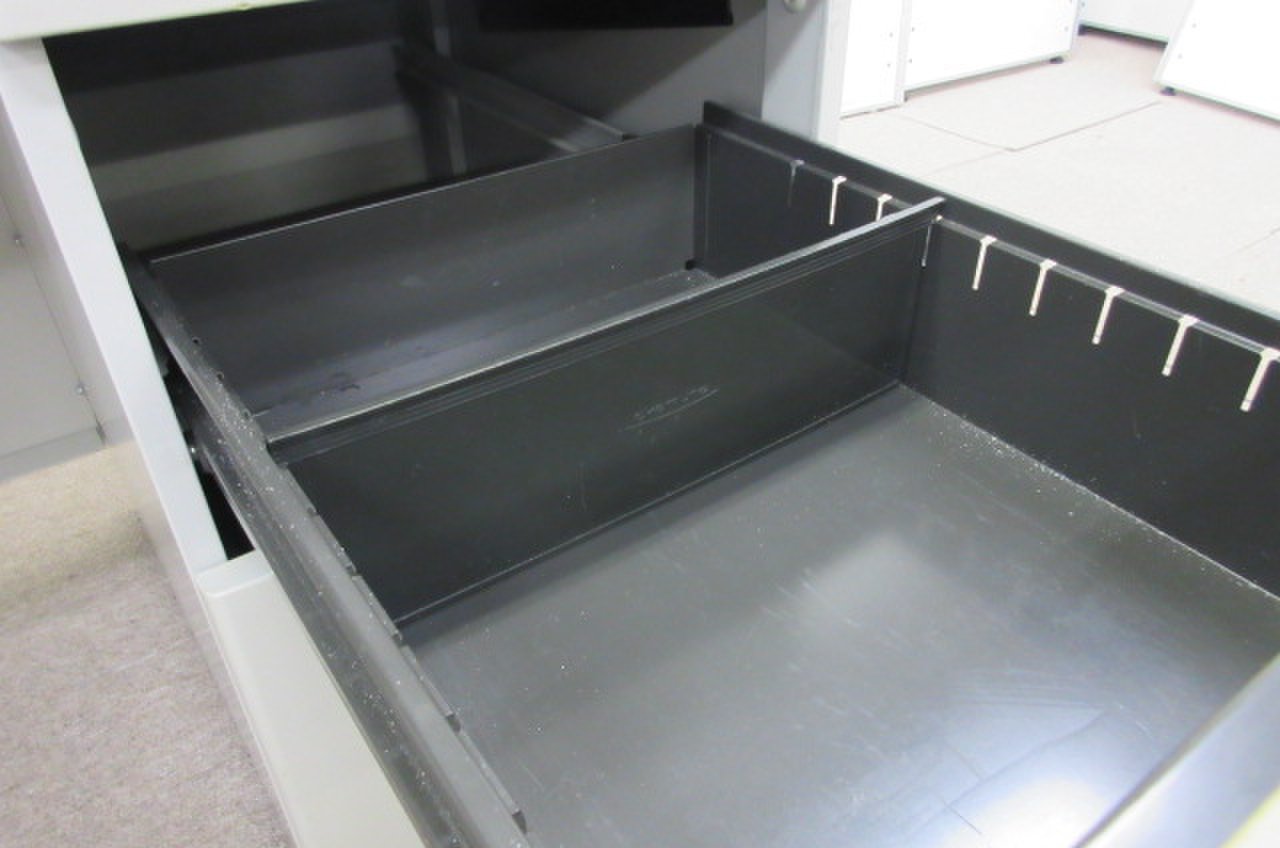 広々とした倉庫スペースに豊富な在庫がございます。オフィス家具が中古で一式そろいます!