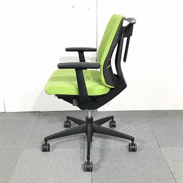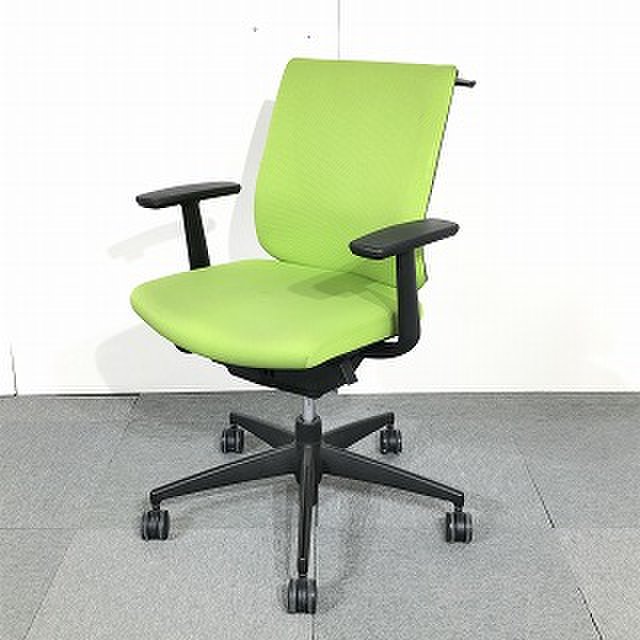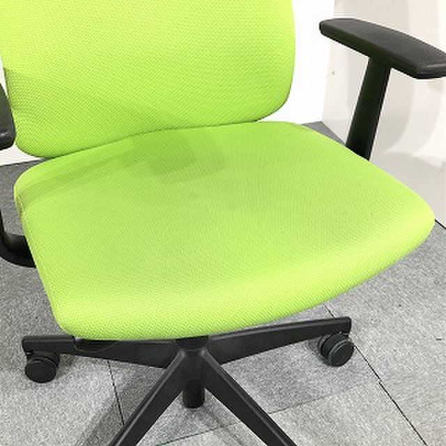 【関西倉庫在庫】コクヨ製 ウィザードシリーズ イエローグリーン 樹脂脚 固定肘 肘付きローバックチェア 【弊社使用欄: A01019819】