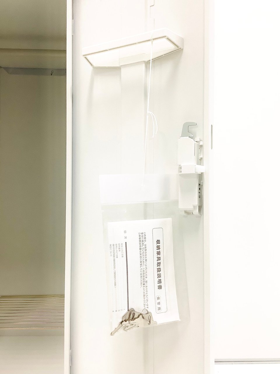 - 完備鏡、ネクタイ掛け、傘立て、網棚、フック等が全て完備されている。