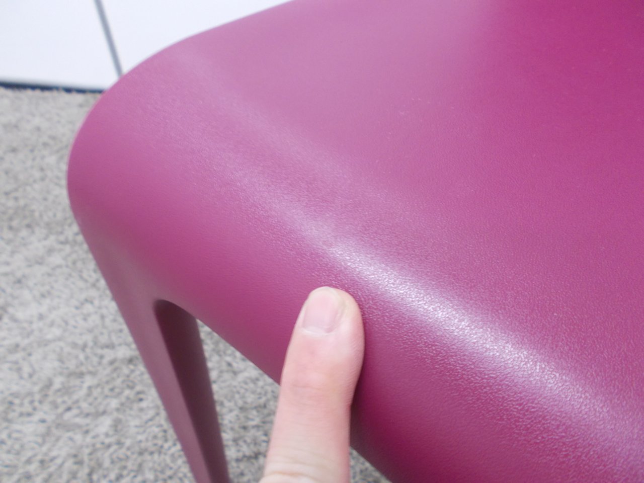 - かなり強い濃い黄ばみ・変色が商品全体にある。(例、座面・背もたれ、脚部等にある。)