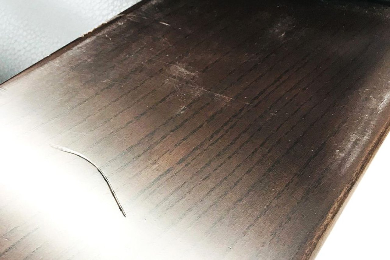 - あり黄ばみ・変色が広い範囲にうっすらある、または濃い黄ばみ・変色が一部ある。(例:三人用ソファ、二人用ソファ、一人用ソファの場合、背もたれ、肘かけ、座面等、 センターテーブルの場合、天板、脚にある。)