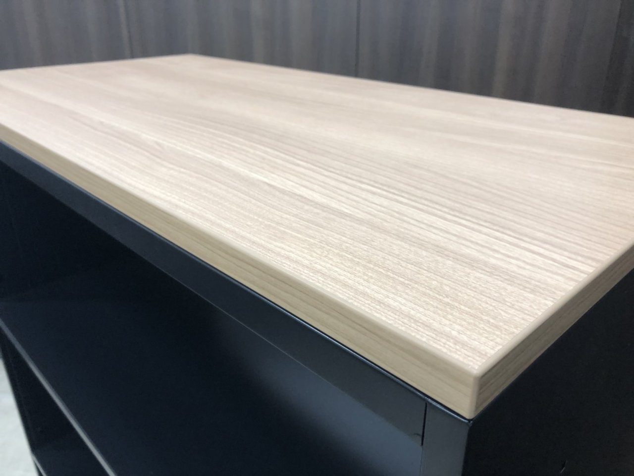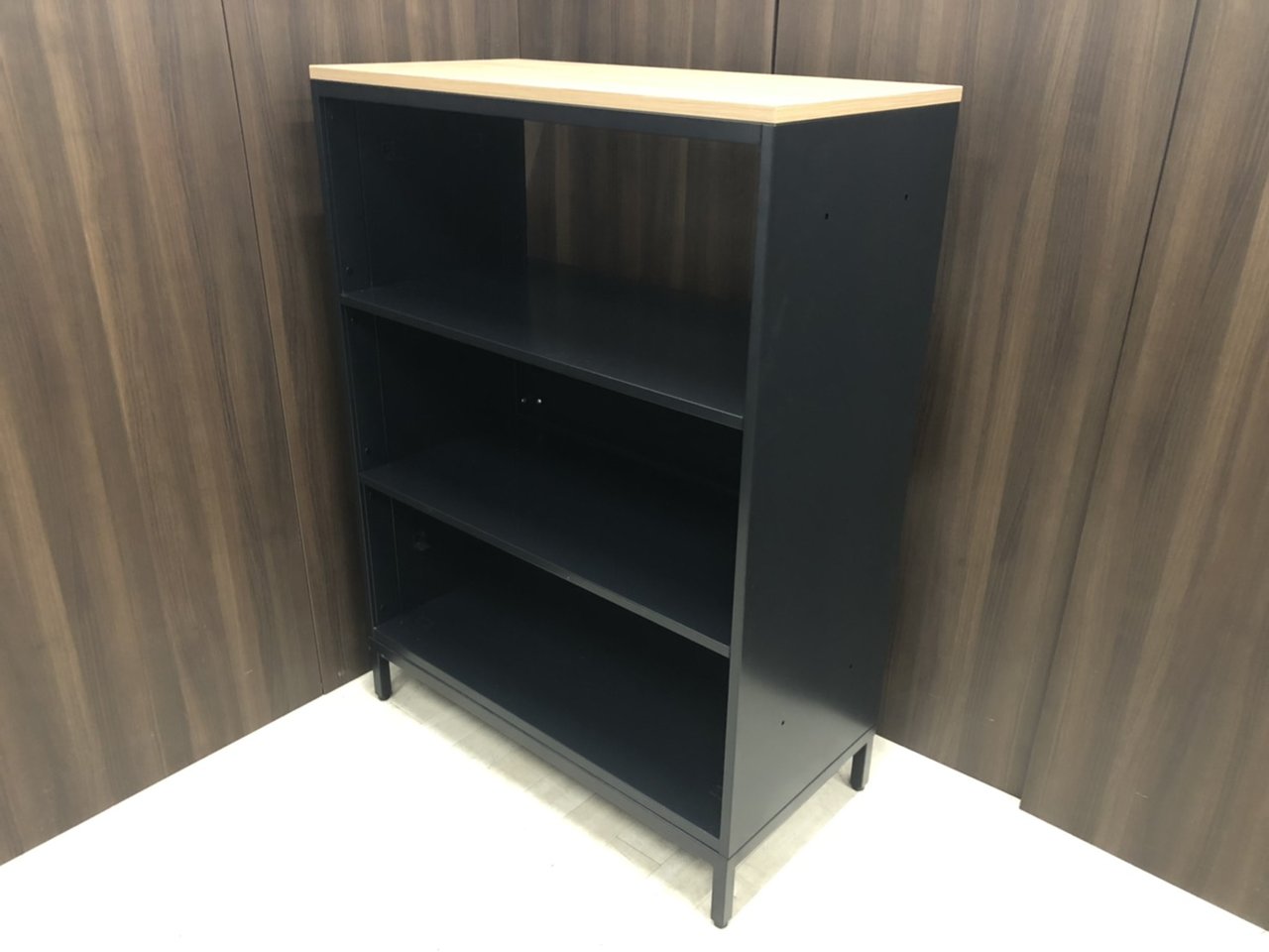 【在庫セール品・1台限定】【T12】■コクヨ製 エディア(オープンタイプ) オープン書庫 ■ブラック ■ナチュラル天板付き ■背面ナチュラル ■2段目オープン ※棚板のピッチ変更は不可となります。【ブラック×ナチュラルでおしゃれなデザイン! 背面からも見栄え良し!】