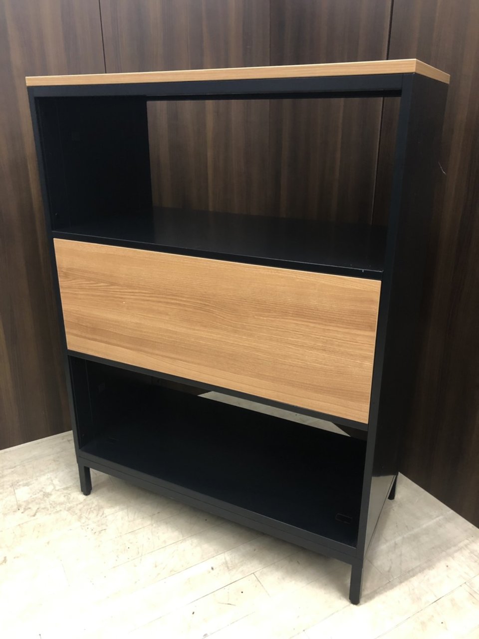 【在庫セール品・1台限定】【T12】■コクヨ製 エディア(オープンタイプ) オープン書庫 ■ブラック ■ナチュラル天板付き ■背面ナチュラル ■2段目オープン ※棚板のピッチ変更は不可となります。【ブラック×ナチュラルでおしゃれなデザイン! 背面からも見栄え良し!】