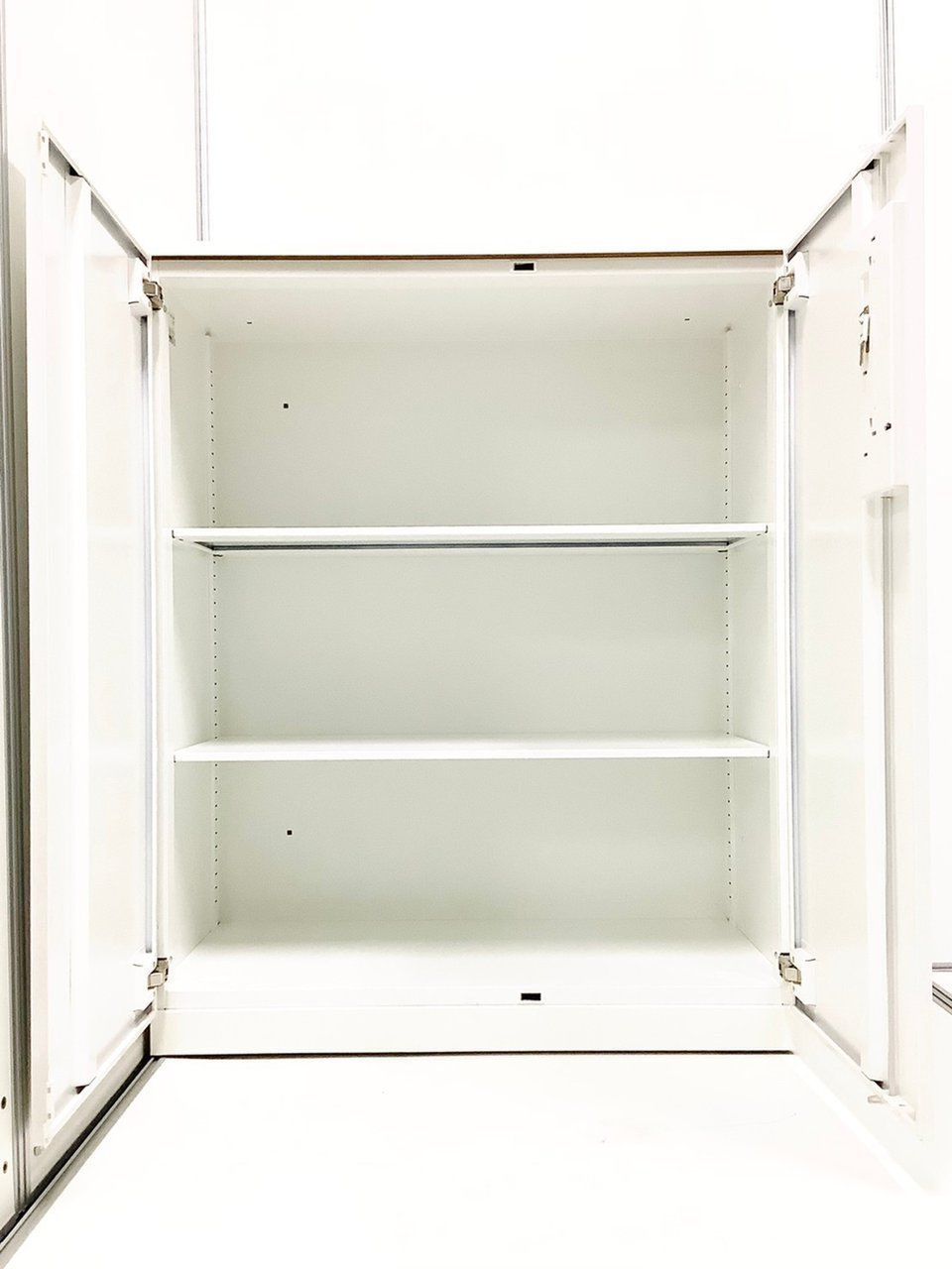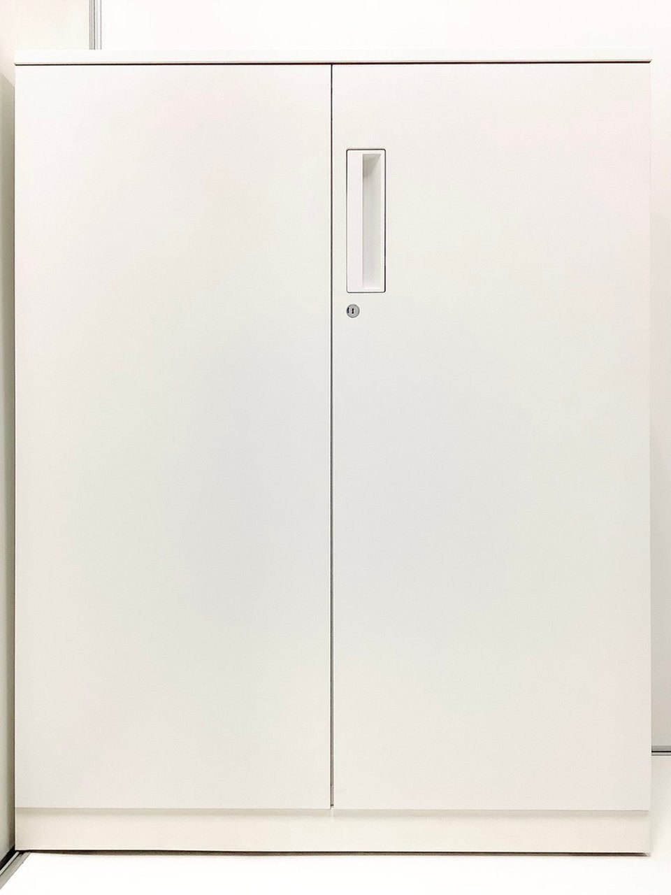 【収納物がひとめで分かる両開き戸タイプ!】■コクヨ(KOKUYO)製 エディア(EDIA)シリーズ 両開き書庫 ローキャビネット H1130㎜ ■天板・ベース付 ■ホワイト ■シリンダー錠【IB】