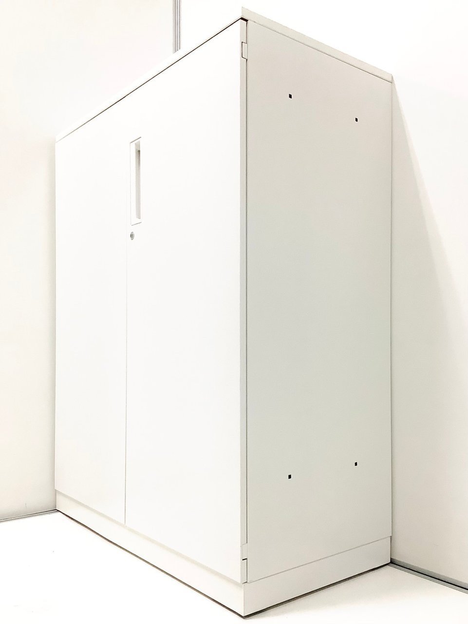 【収納物がひとめで分かる両開き戸タイプ!】■コクヨ(KOKUYO)製 エディア(EDIA)シリーズ 両開き書庫 ローキャビネット H1130㎜ ■天板・ベース付 ■ホワイト ■シリンダー錠