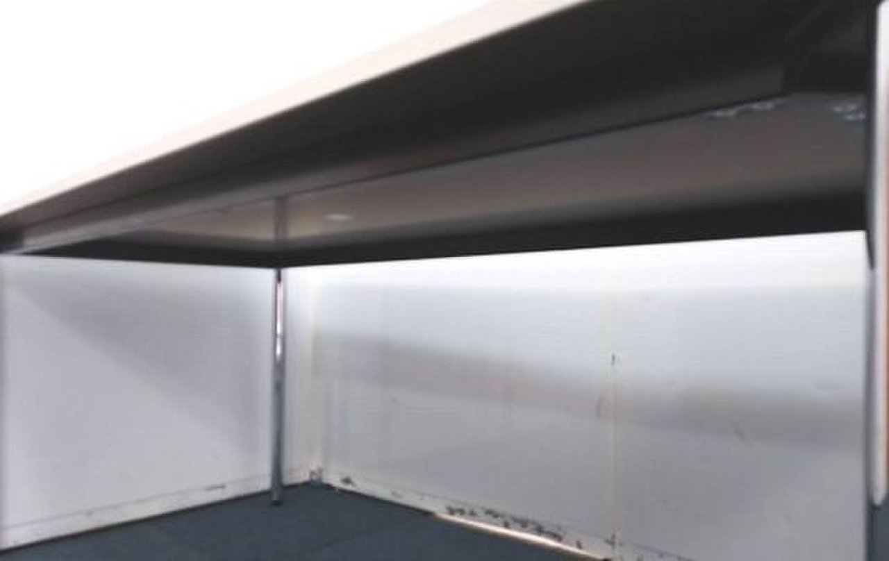 - 目立つ箇所複数あり深い傷・凹みが商品全体にある。(例、天板、幕板、棚板、サイド部分、脚部等にある。)