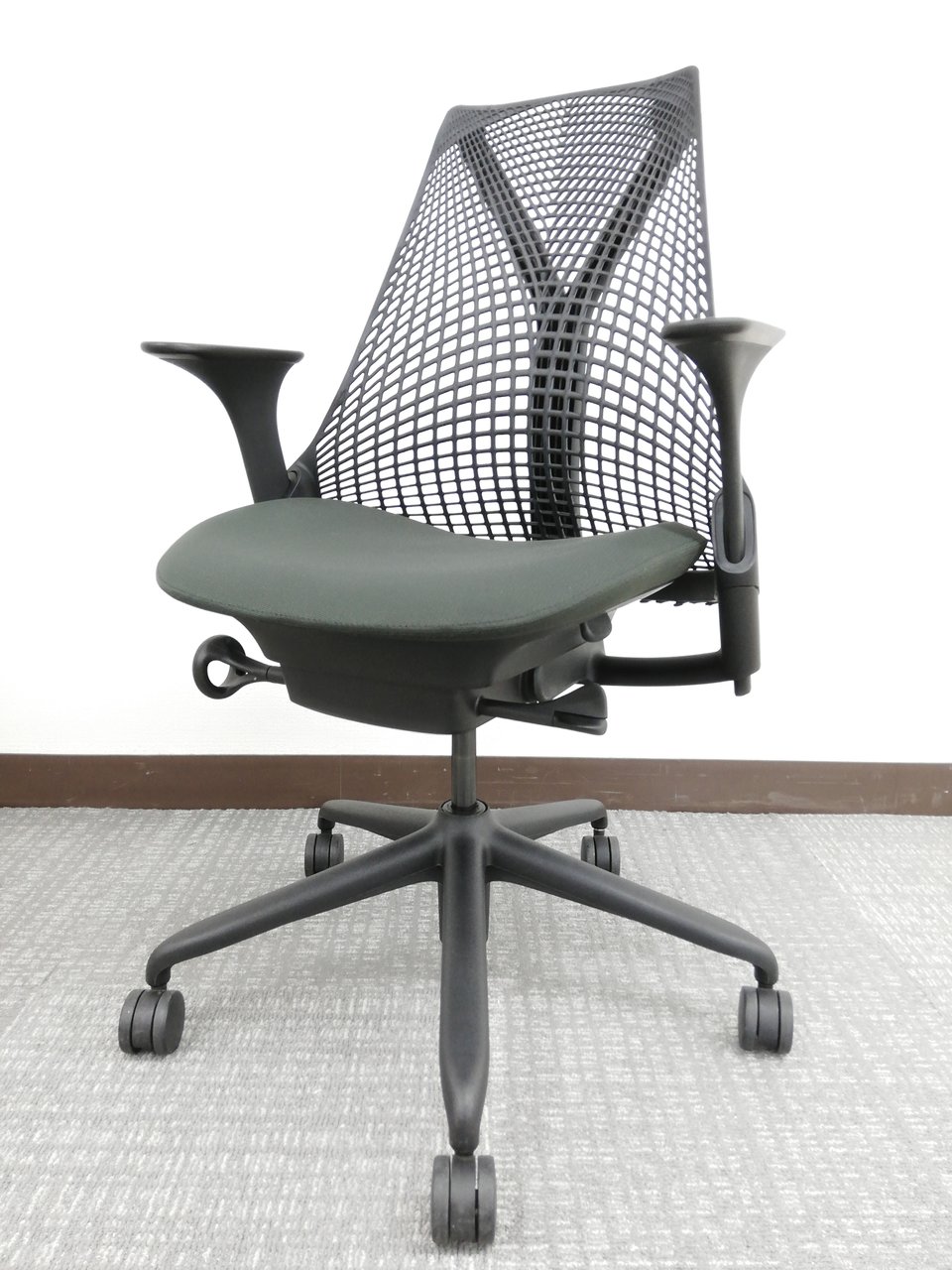 【2016年製Aランク】テレワークおススメ他人とは違うセイル(SAYL)チェア※座面オリーブ色&肘掛け上下可動&前傾機能付タイプ◆Herman Miller製③【RP】- 埼玉本店