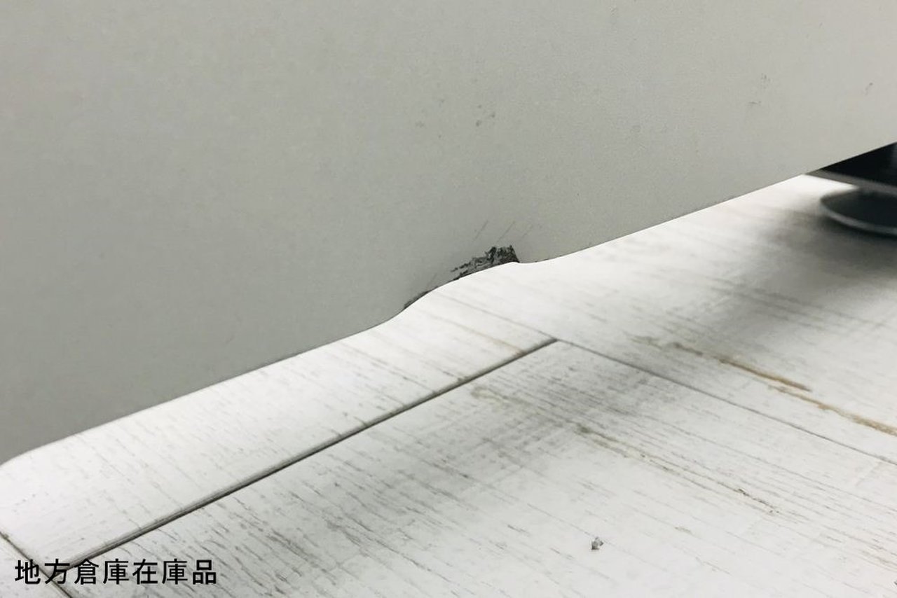 - 目立つ箇所複数あり深い傷・凹みが商品全体にある。(例、天板、幕板、棚板、サイド部分、脚部等にある。)