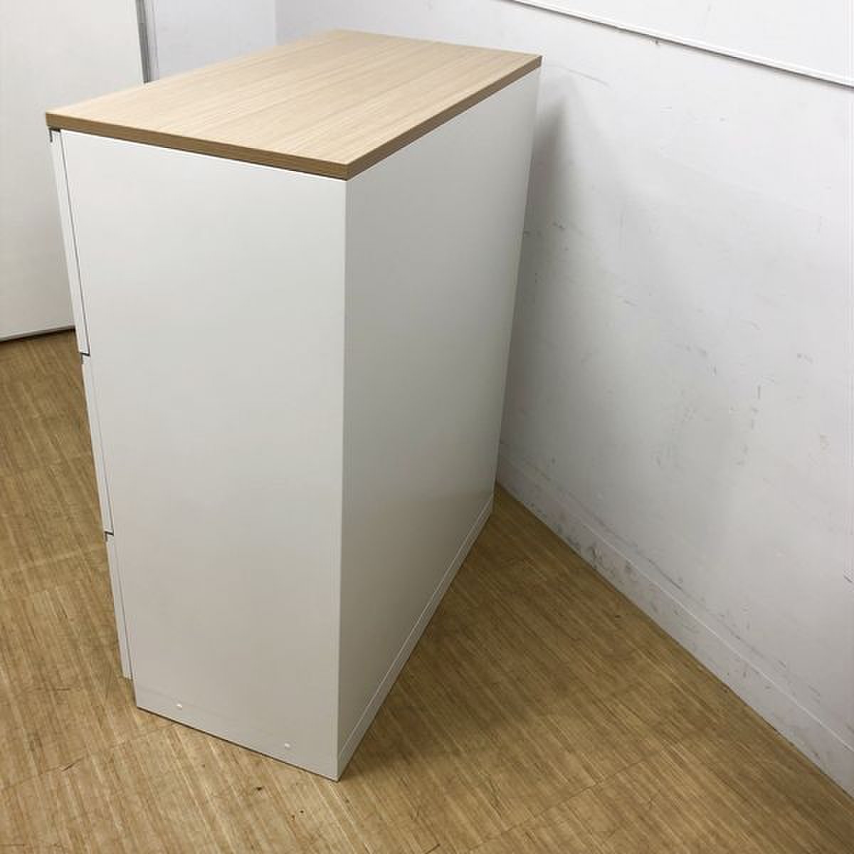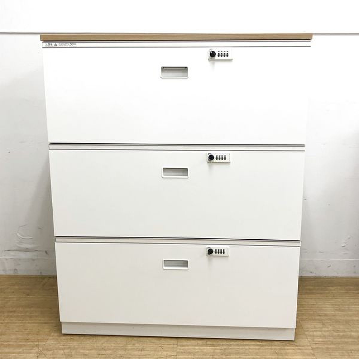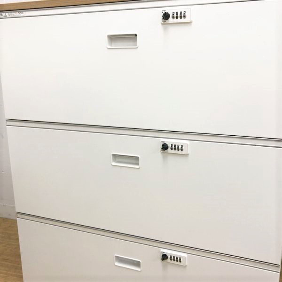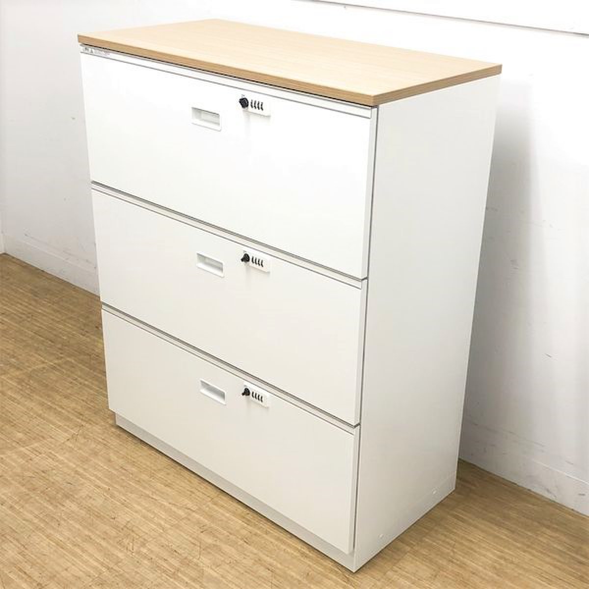 【A4ファイルも沢山収納可能!ホワイトカラーの人気シリーズ3段ラテラル書庫!】/オススメ(おすすめ) /人気商品【弊社使用欄:A01013834】3段ラテラル書庫/ローキャビネット/天板付き/ホワイト/シリンダー錠/ITOKI/THIN LINE■イトーキ/シンライン※取っ手部分日焼あり