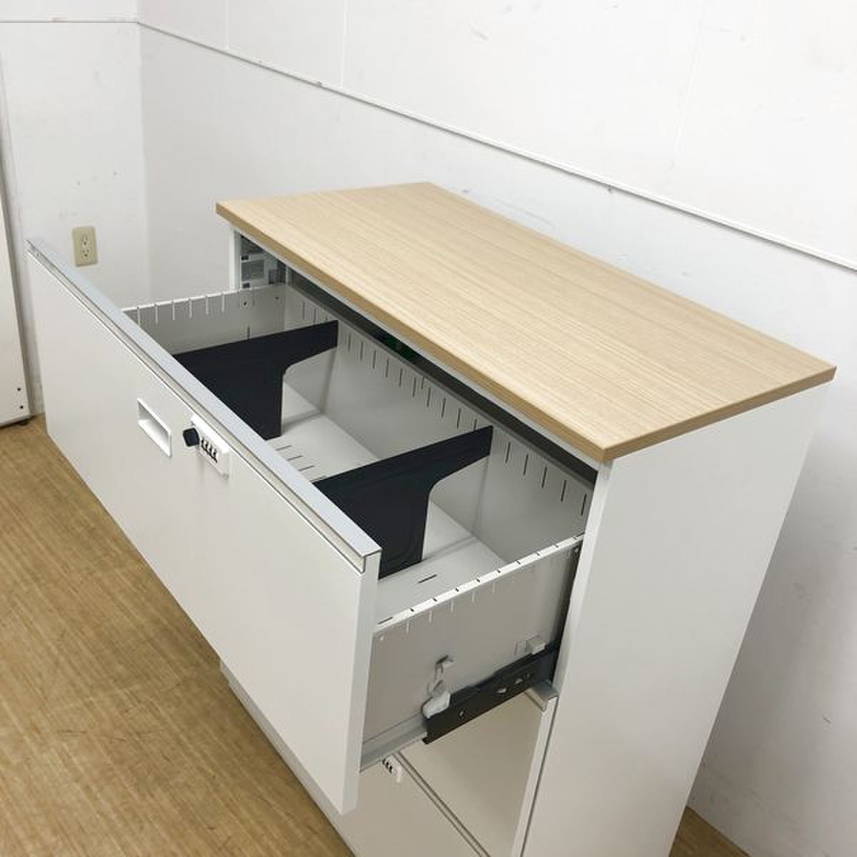 【珍しい2段ラテラルタイプ!】耐久性・機能性を兼ね備えたキャビネット!スペースにジャストフィットする引き出し型収納 ■イトーキ/シンライン/ホワイト シリンダー錠