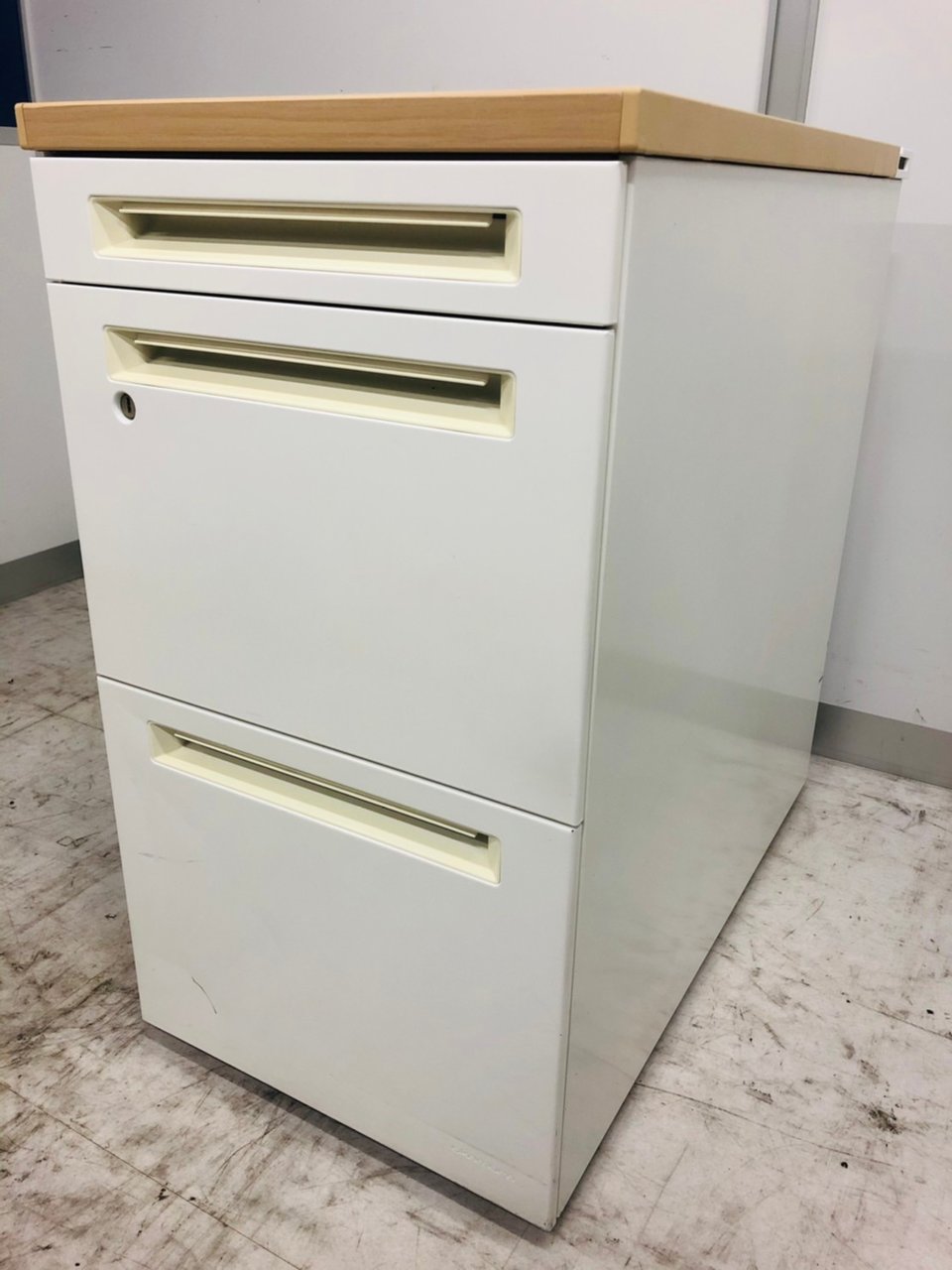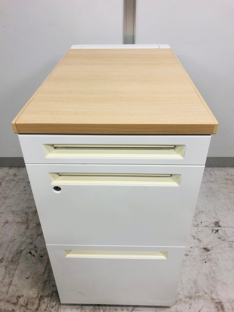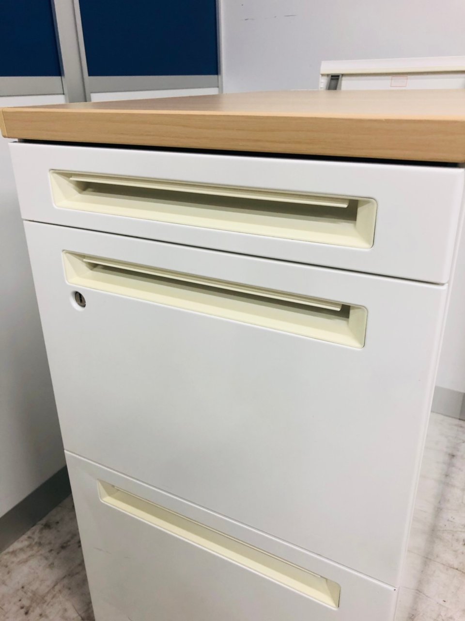 【天板木目調3段脇机】高さ720㎜でフリアドと同じ高さ!オカムラ/アドバンス/ホワイト色在庫がある店舗一覧