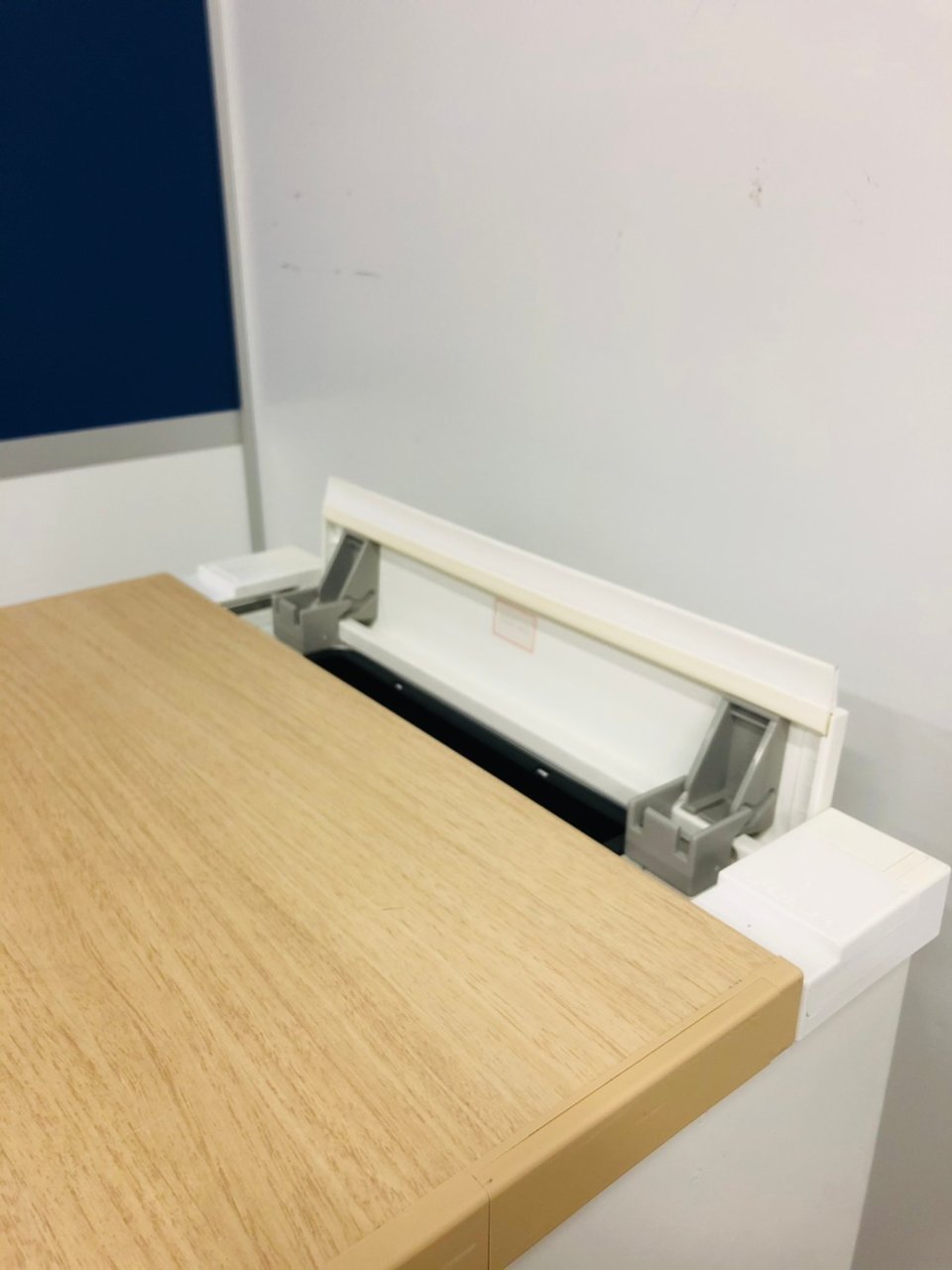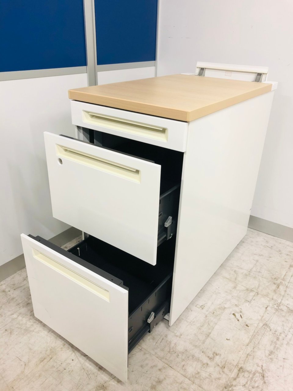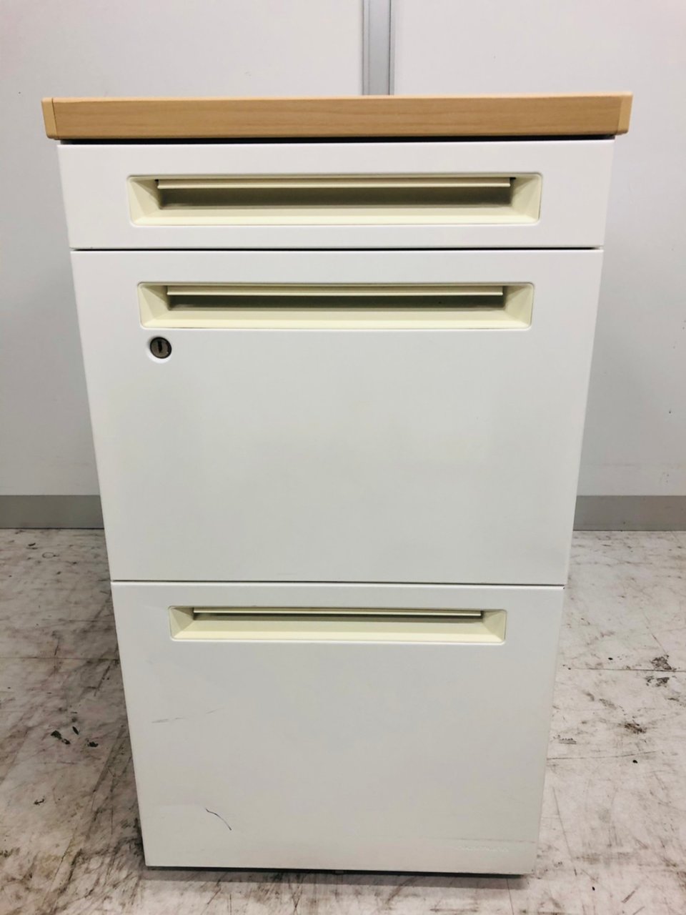 【天板木目調3段脇机】高さ720㎜でフリアドと同じ高さ!オカムラ/アドバンス/ホワイト色在庫がある店舗一覧