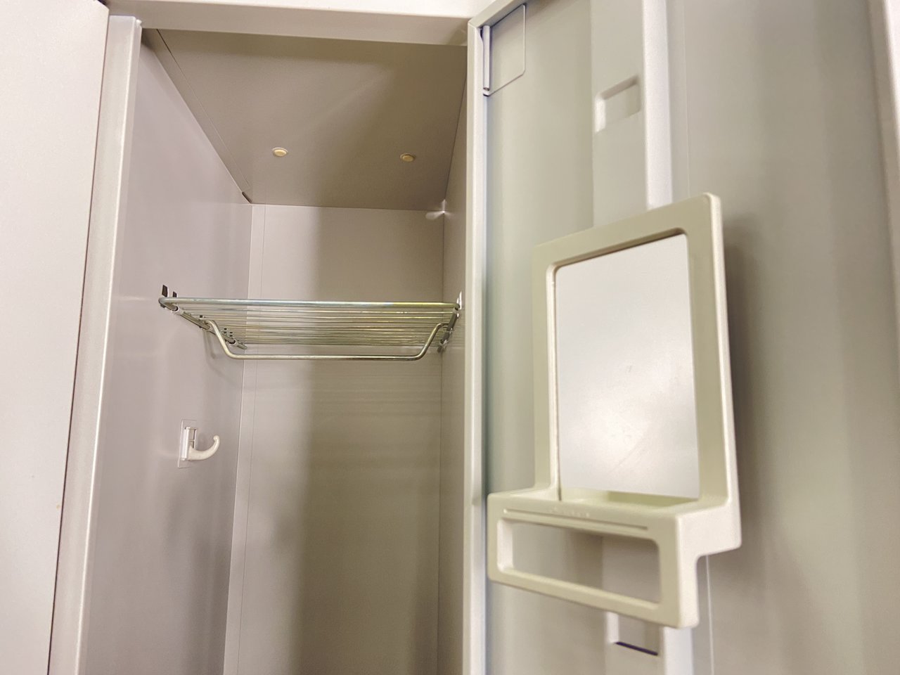 - 完備鏡、ネクタイ掛け、傘立て、網棚、フック等が全て完備されている。