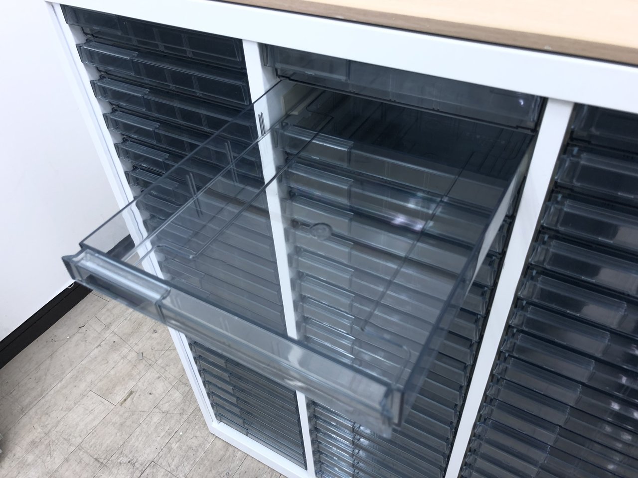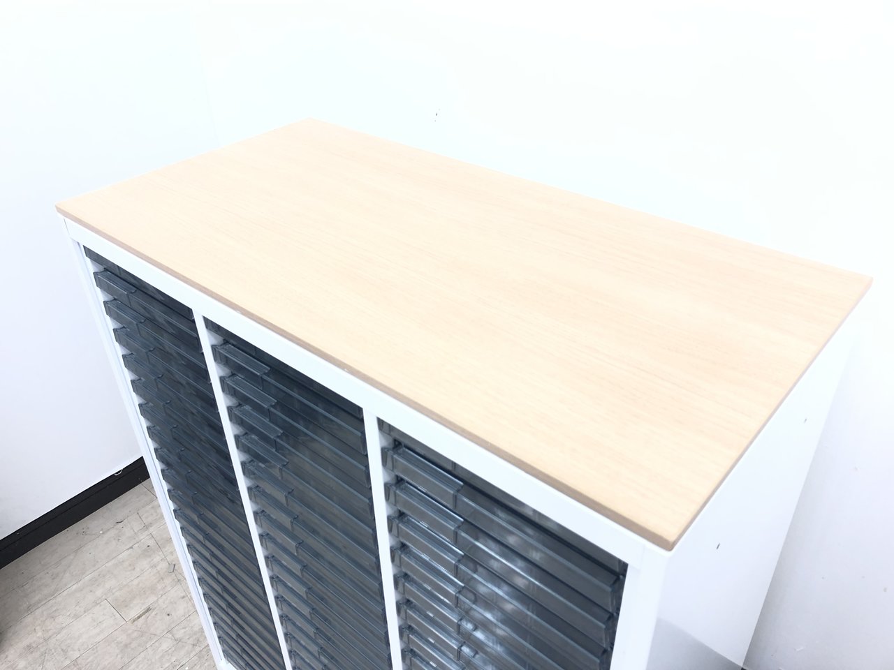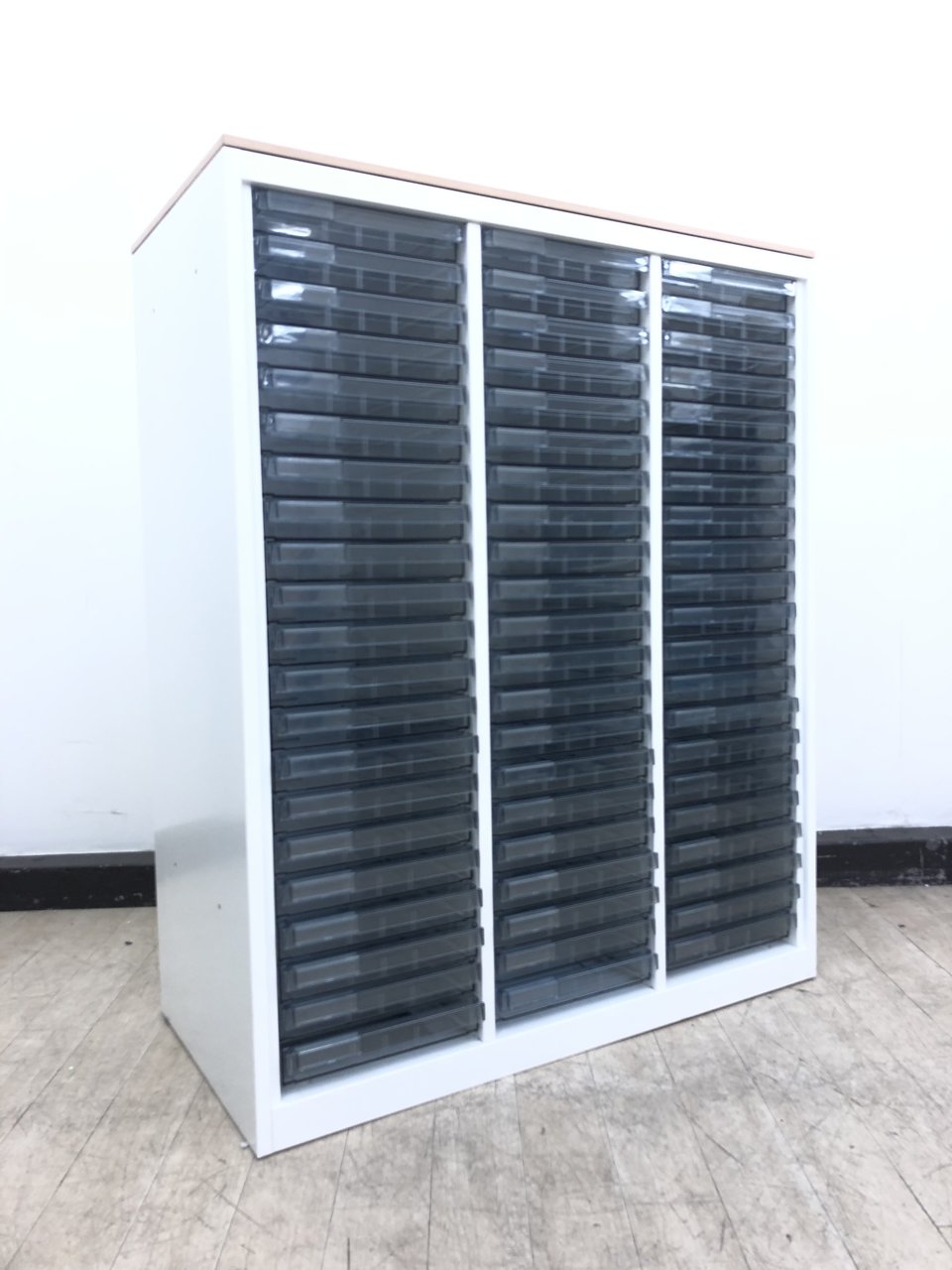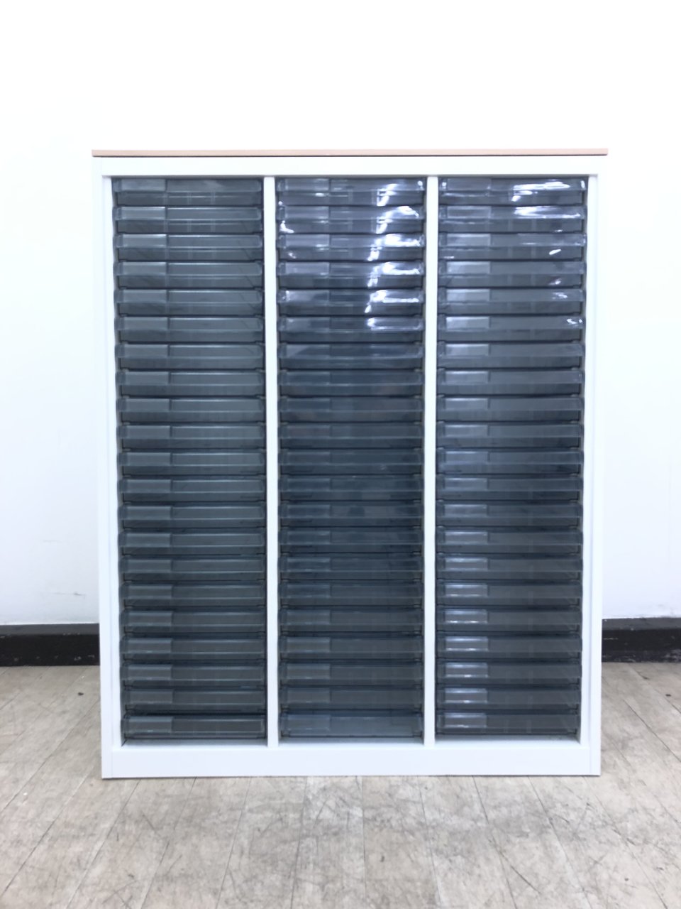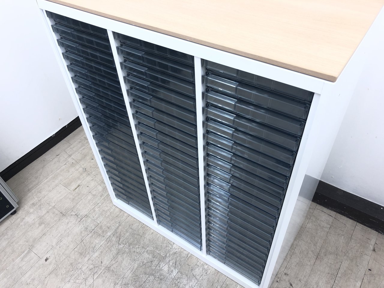 ★オカムラ製 レクトライン ホワイト 3列x16段 浅型x11段/深型x5段混在 W900xD450xH1150サイズ 天板付 クリスタルトレーキャビネット クリスタルトレイ!!