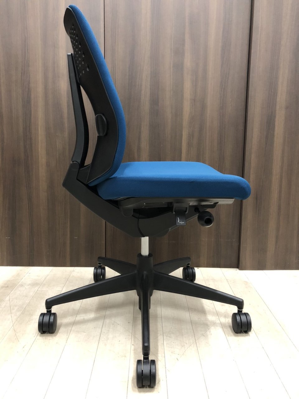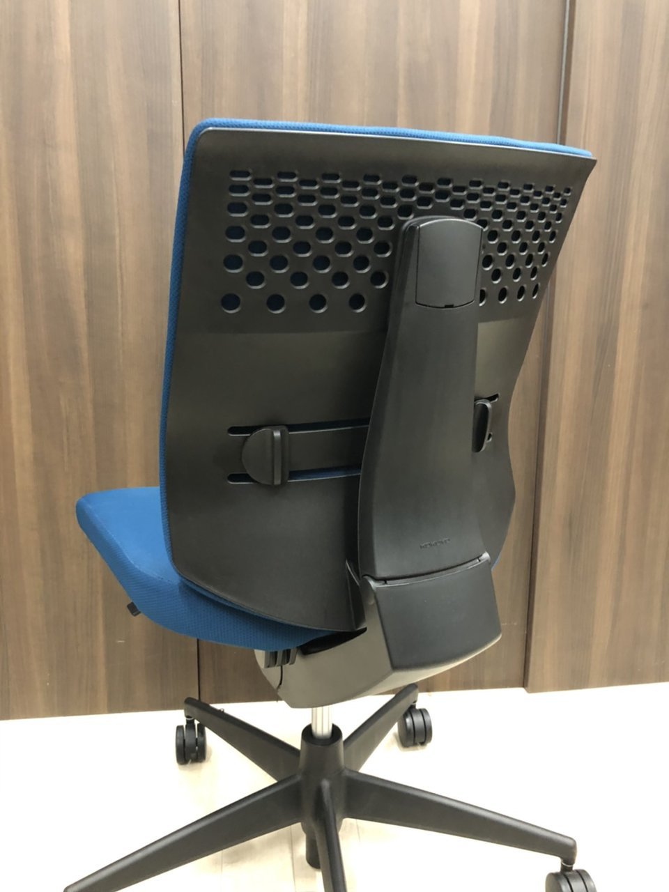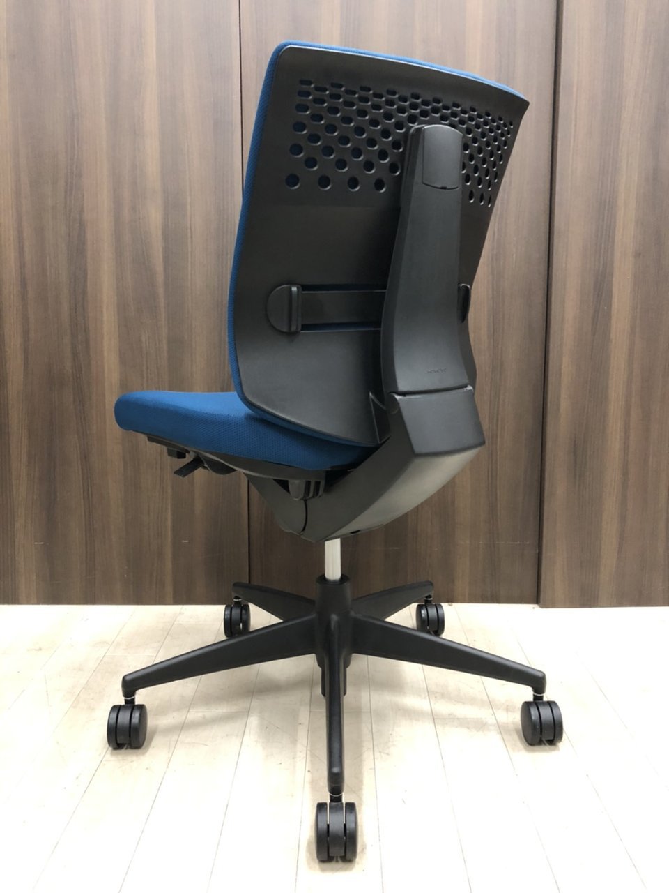 コクヨ ウィザード2 ローバック プルシアンブルー×ブラックフレーム 肘無しモデル コートハンガー付き 定番の使いやすいチェア オフィスバスターズ梅田本店