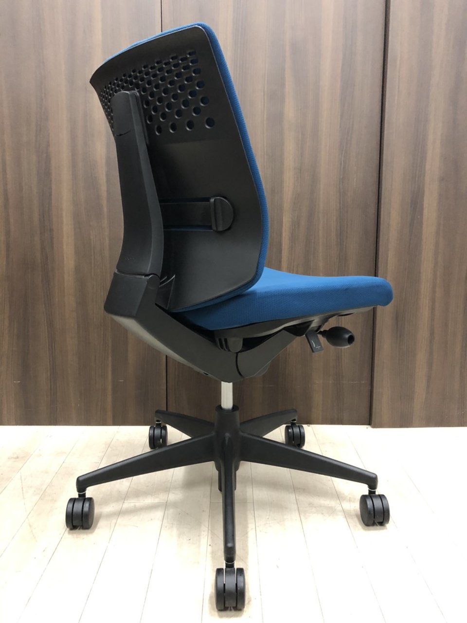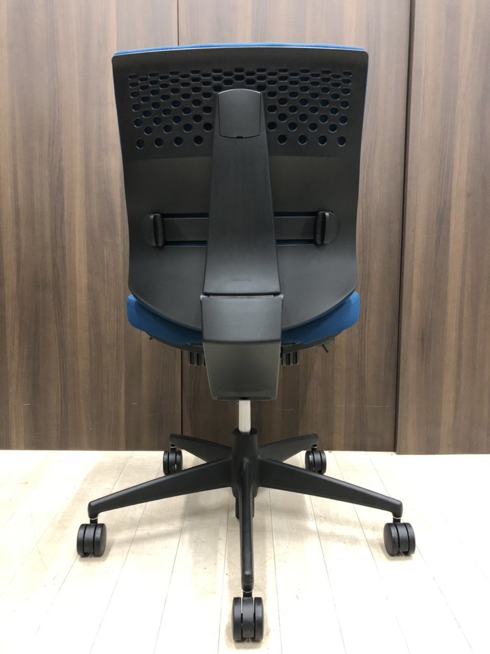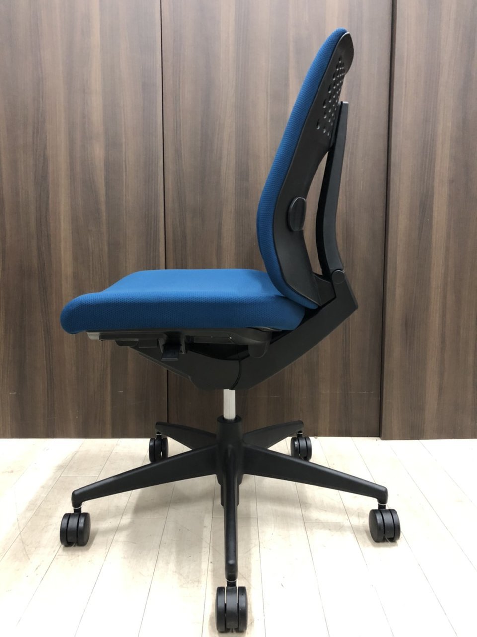 コクヨ ウィザード2 ローバック プルシアンブルー×ブラックフレーム 肘無しモデル コートハンガー付き 定番の使いやすいチェア オフィスバスターズ梅田本店